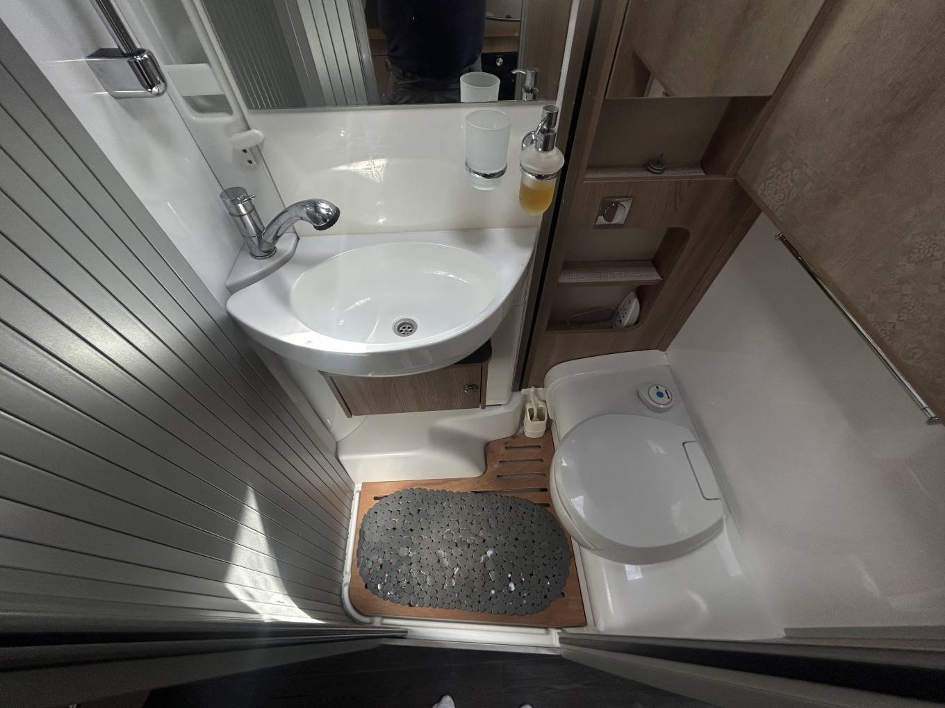 Moving to the rear you have extremely comfortable single beds - that are joined at the centre. These beds are 195cm x 85cm (total width - approx 202cm). The owners have also purchased the extra cushions needed to give this a further single bed - that you make up using the sofas in the living area There is also a centrally located washroom that features cassette toilet, sink and shower with pull round screen. Heating and hotwater is provided by the easy to use Truma I-net system.