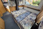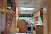 - Truma blown-air central heating & hot water that operates on gas, wardrobe with a hanging rail.