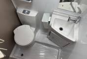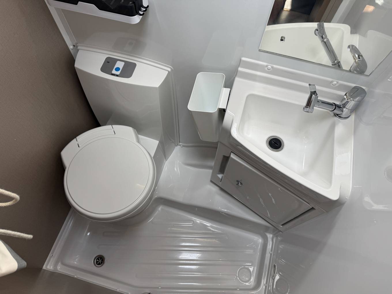 As you enter the motorhome you have the highly desired rear bunk beds with plenty of storage including the wardrobe along with the popular large washroom which consists of a shower, Toilet, washbasin and storage cupboards and shelves with a good sized mirror.