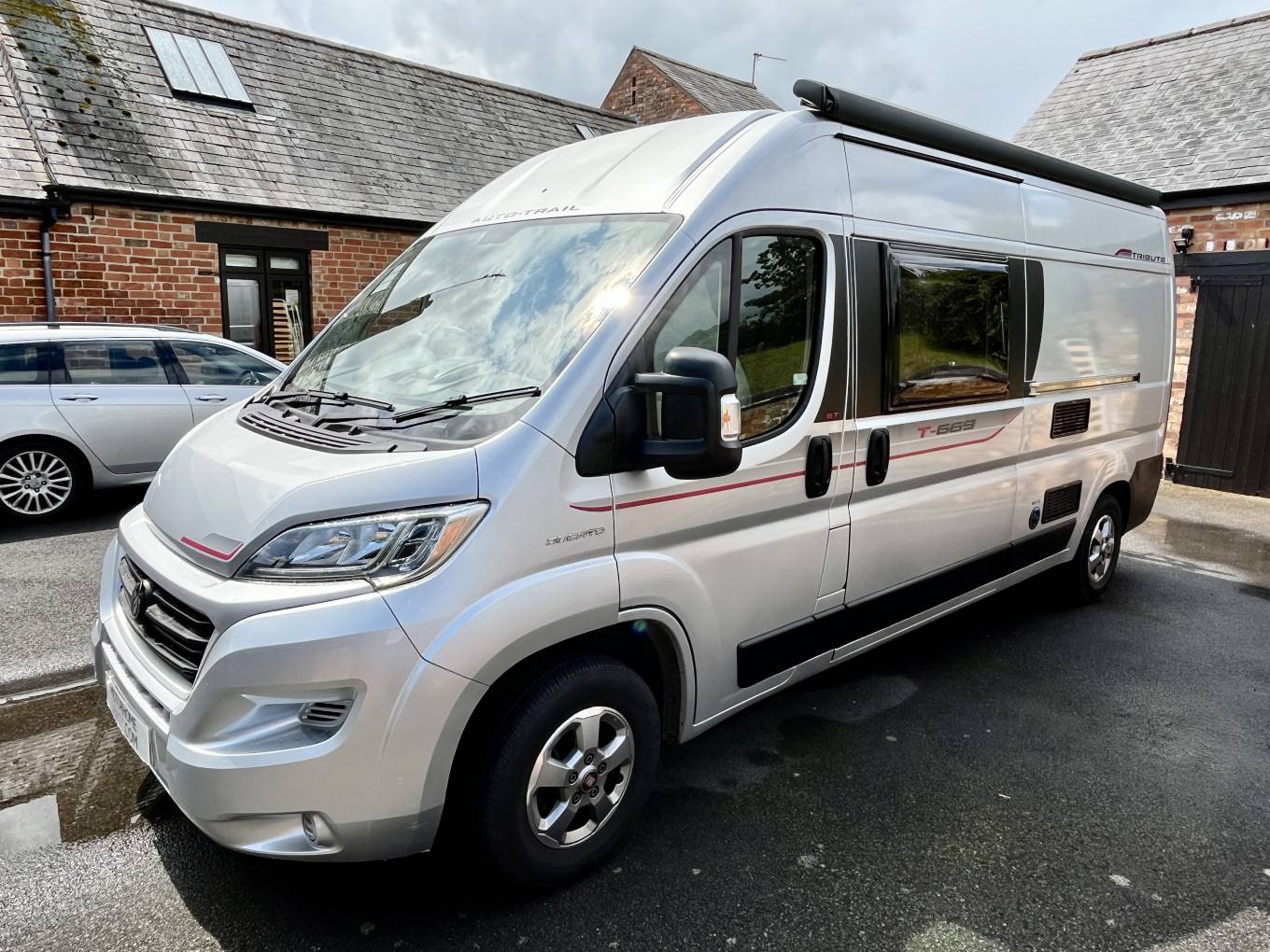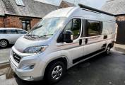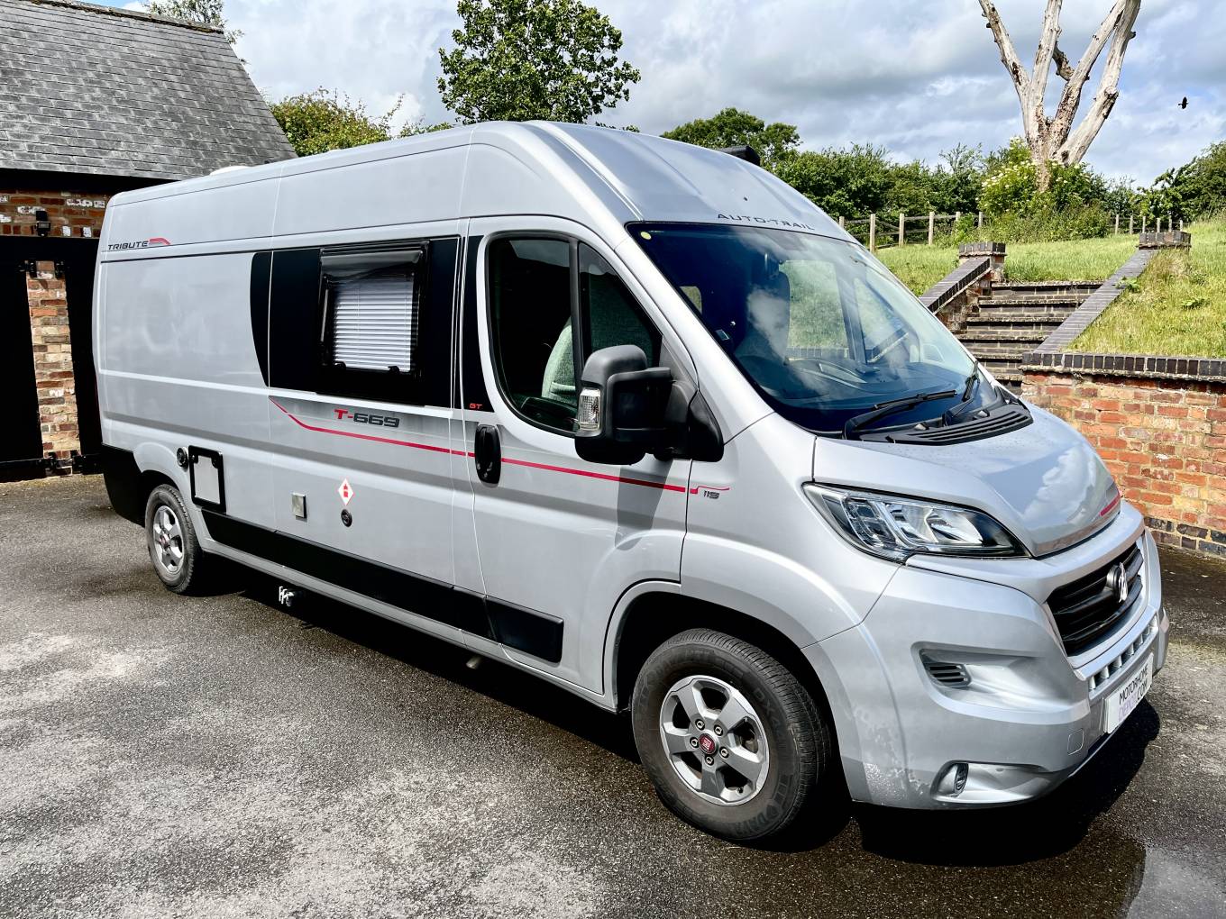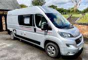 Here is our Auto-trail Tribute 669 GT, this compact 5.99 M van is ideal for both solo travelers, couples and families alike. First registered in May 2019 this van has covered just 27,988 miles from new and is based on the Fiat chassis with a 6 speed manual gearbox. This exclusive GT model has the advantage of gloss grey alloy wheels, exterior wind out awning and a 100 W solar panel. This attractive metallic silver van also has a refillable under slung LPG gas tank, rear reversing camera, and a twin cycle bike rack.