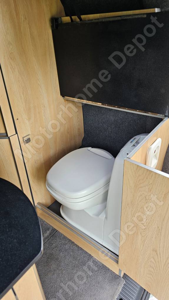 * An Autohaus Camelot conversion with a FITTED TOILET in the back, with the Cassette access from inside the raised rear tailgate.