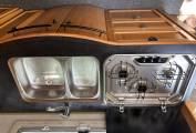 Excellent layout for a family with sleeping places for 6 people and 6 travelling seat belts. The popular U-shaped lounge can be used for dining, sleeping and relaxing. Dinette converts into a double bed. At the rear there is a fixed double bed compartment with thick mattress and to pull down over the cab, there is another King size double bed. Six sleeping places in all.