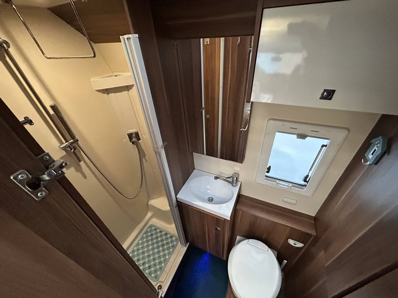 The highlight of this model is the electric drop-down bed, which lowers effortlessly over the lounge area and tucks away neatly when not in use, maximising your living space. The Truma heating and boiler system (gas and electric) ensures comfort in all seasons, while the Gaslow refillable LPG system and solar panel make it ideal for off-grid adventures.