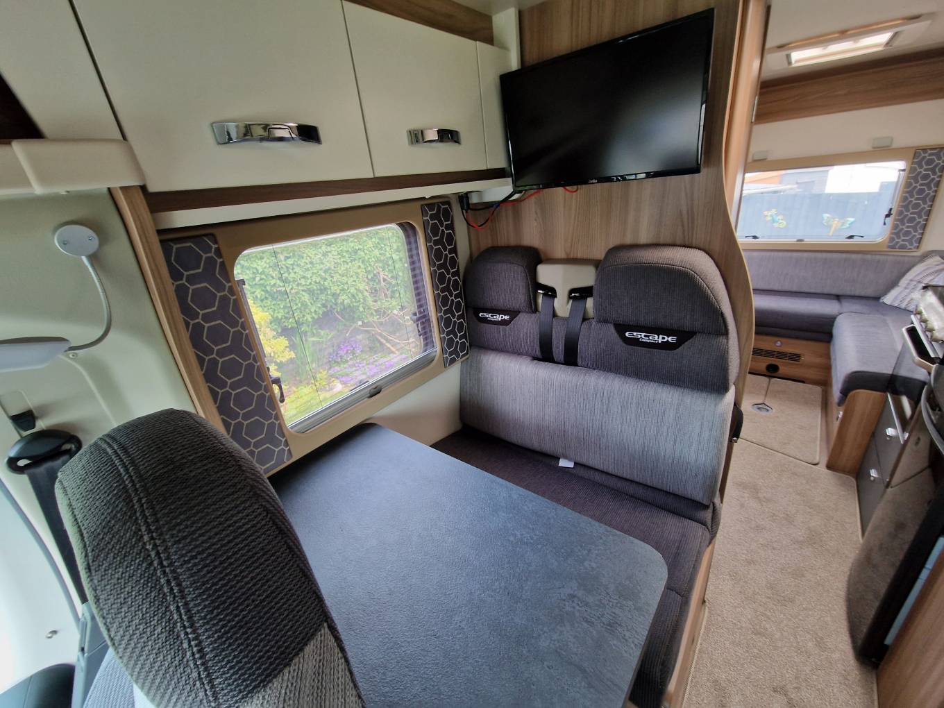 Motorhome Depot are pleased to present this excellent 2019 Swift Escape Compact C402 2-berth,4-belt compact motorhome. Based on the Fiat Ducato, it is powered by the 130BHP 2.3 diesel engine and 6-speed manual gearbox.Having only covered 16000 miles with 2 owners, it comes with service history including a service on 3.7.24, a June 2026 MOT with no advisories and a fresh habcheck so the next owner can have complete peace of mind. It has a GVW of 3300kg with a payload of 600kg so it can be driven on a standard UK licence and is 5.99m long making it very easy to handle on those tricky campsites.