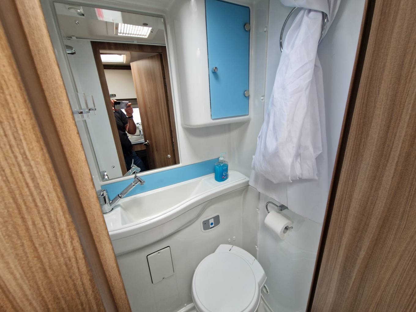 The washroom in the C402 is also surprisingly large for a compact motorhome and you’ll find plenty of room to get washed in here, and the area is fully lined, too. There’s storage space, in the form of a small cupboard, as well as a towel ring and toothbrush holder.