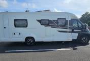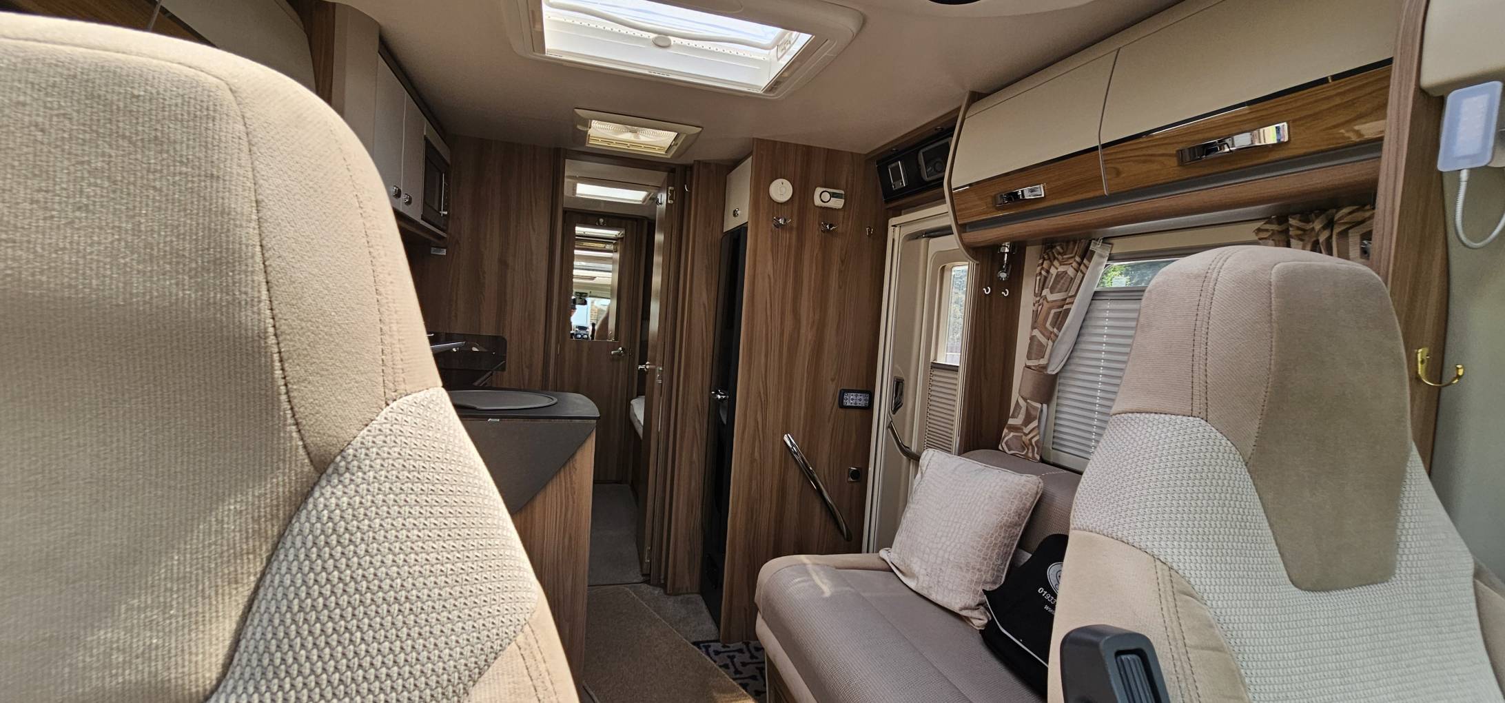 This motorhome comes with plenty of features, including a Thule bike rack, Thule wind out awning, and Alde heating to keep the motorhome warm during winter months. Plenty of skylights feature throughout the motorhome to keep natural light in, along with the elegant LED lighting throughout the habitation area.