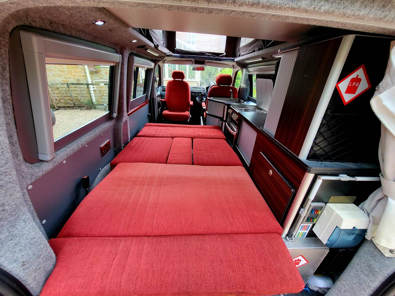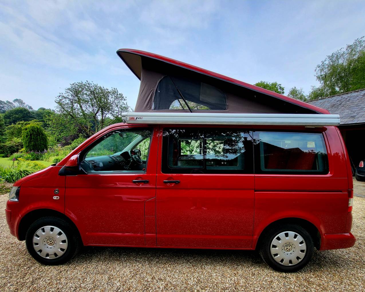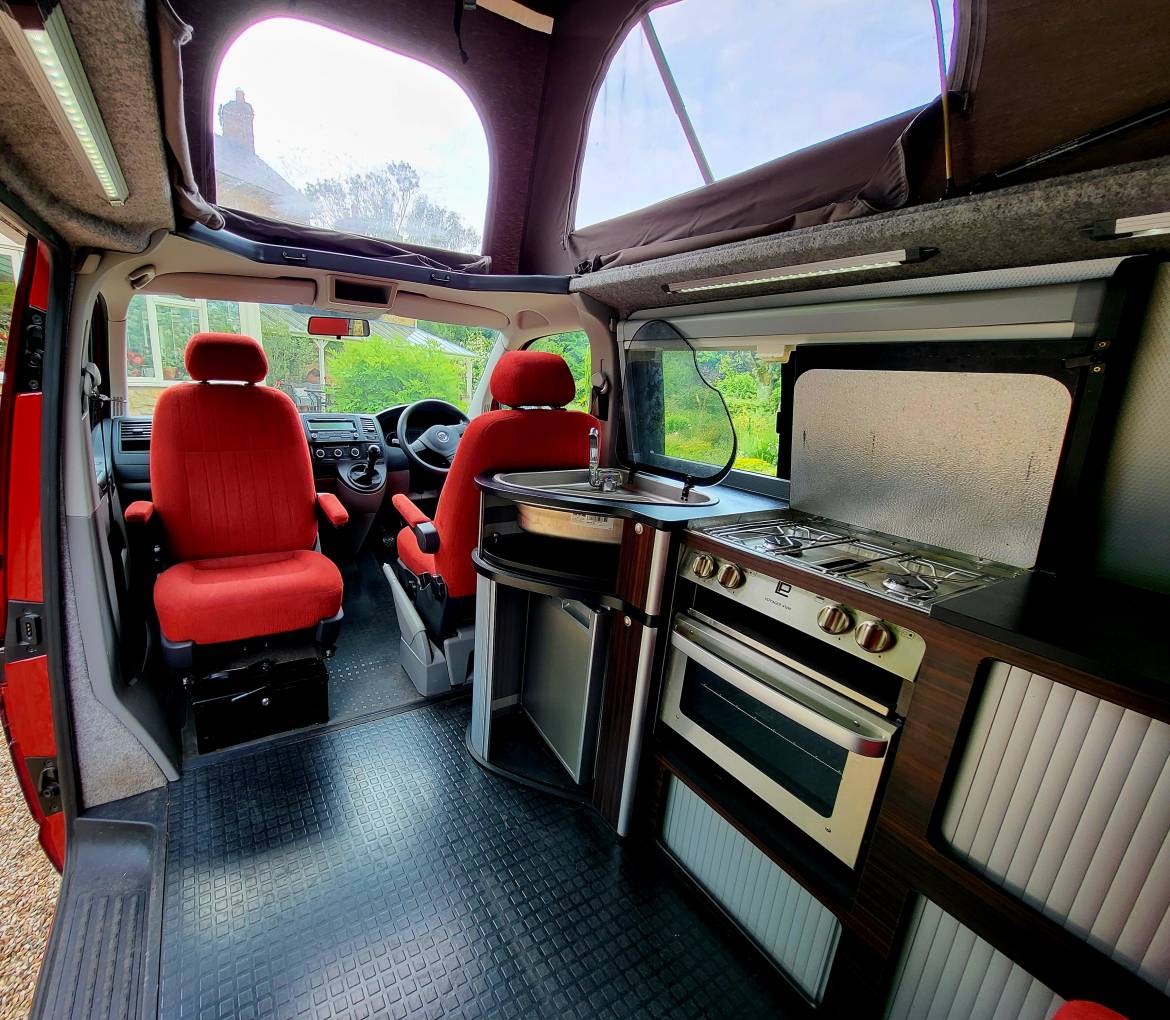 This Camper only has 29k miles from 1 owner purchase as a fresh conversion, 5 speed manual gearbox 1968L (Mapped) engine VW T5.1 Danbury Surf Camper – Stunning Deep Imola Red, Style, Comfort & Adventure in One! everywhere you go with this gorgeous Danbury Surf conversion It's not just a camper, it’s a lifestyle on wheels. Whether you're chasing surf, sunsets, or spontaneous weekends away, this van is ready to roll with everything you need to hit the road.