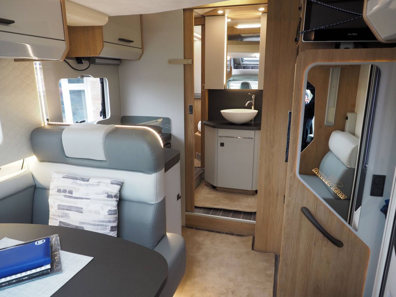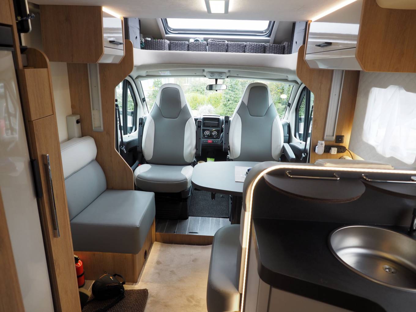 Up front the latest generation 140bhp Fiat Ducato with 6 speed gearbox offers a good blend of economy and power, with driver aids such as media unit with satnav, reversing camera and cruise control, integrated night blinds.