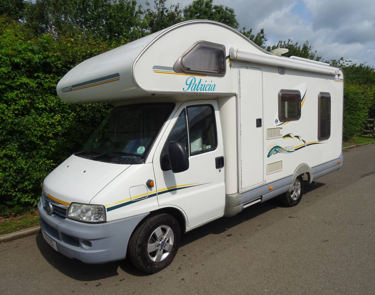 Swift Suntor 590RL - 2004 - 4 Berth - 2 Belted Seats - Rear Lounge - Low Mileage - Fiat Ducato 2.3 JTD - 5 Speed Manual - Service History - MOT till 21 April 2026 - Spare Wheel - 2 Sets of Keys - Cobra Alarm - Cambelt and Water Pump changed at 31791 miles - 4 recently fitted Continental Vanco Camper Tyres - Length 6.22 Metres - Width 2.22 Metres - Height 3.10 Metres - Located near Southam, Warwickshire