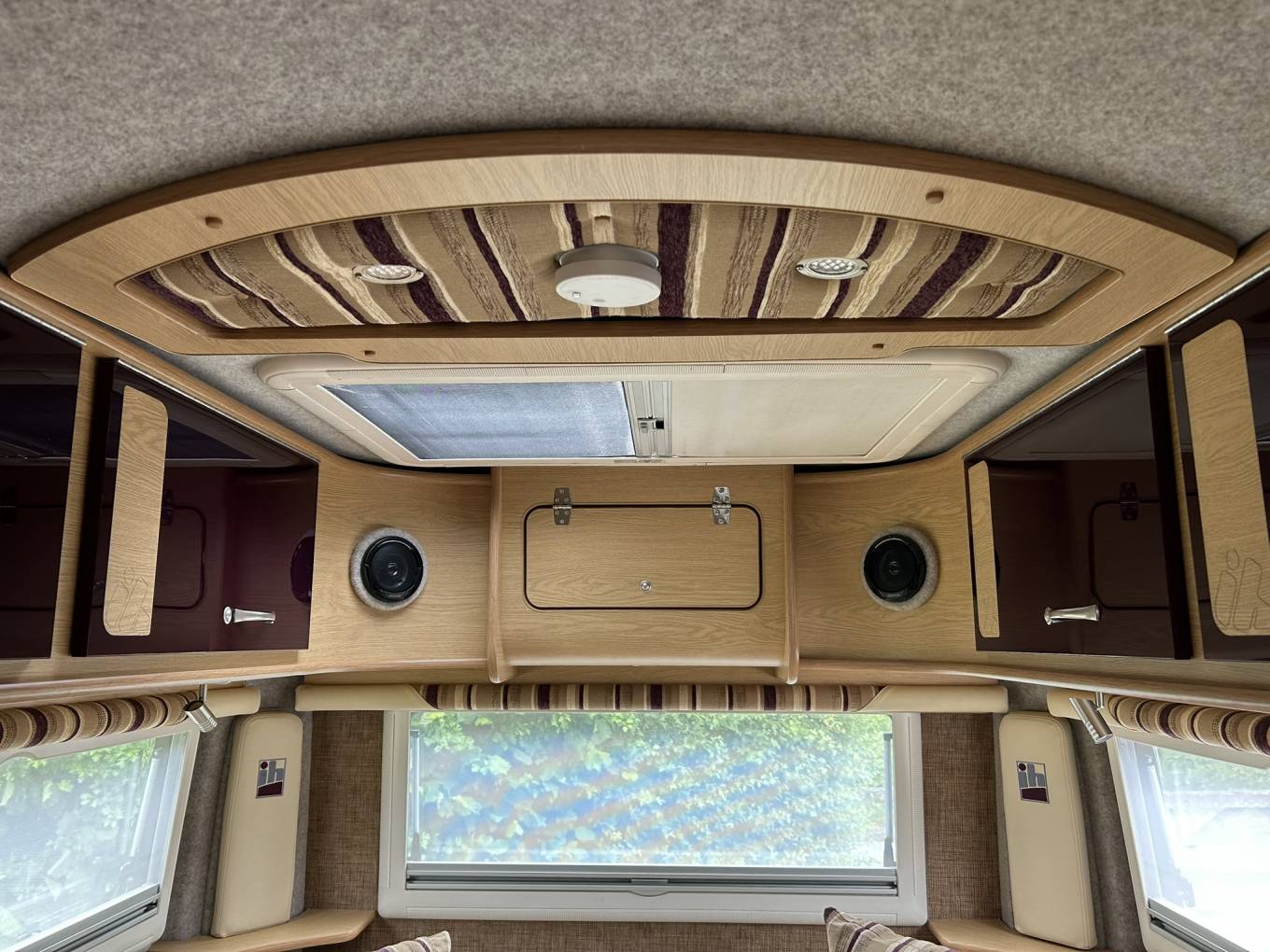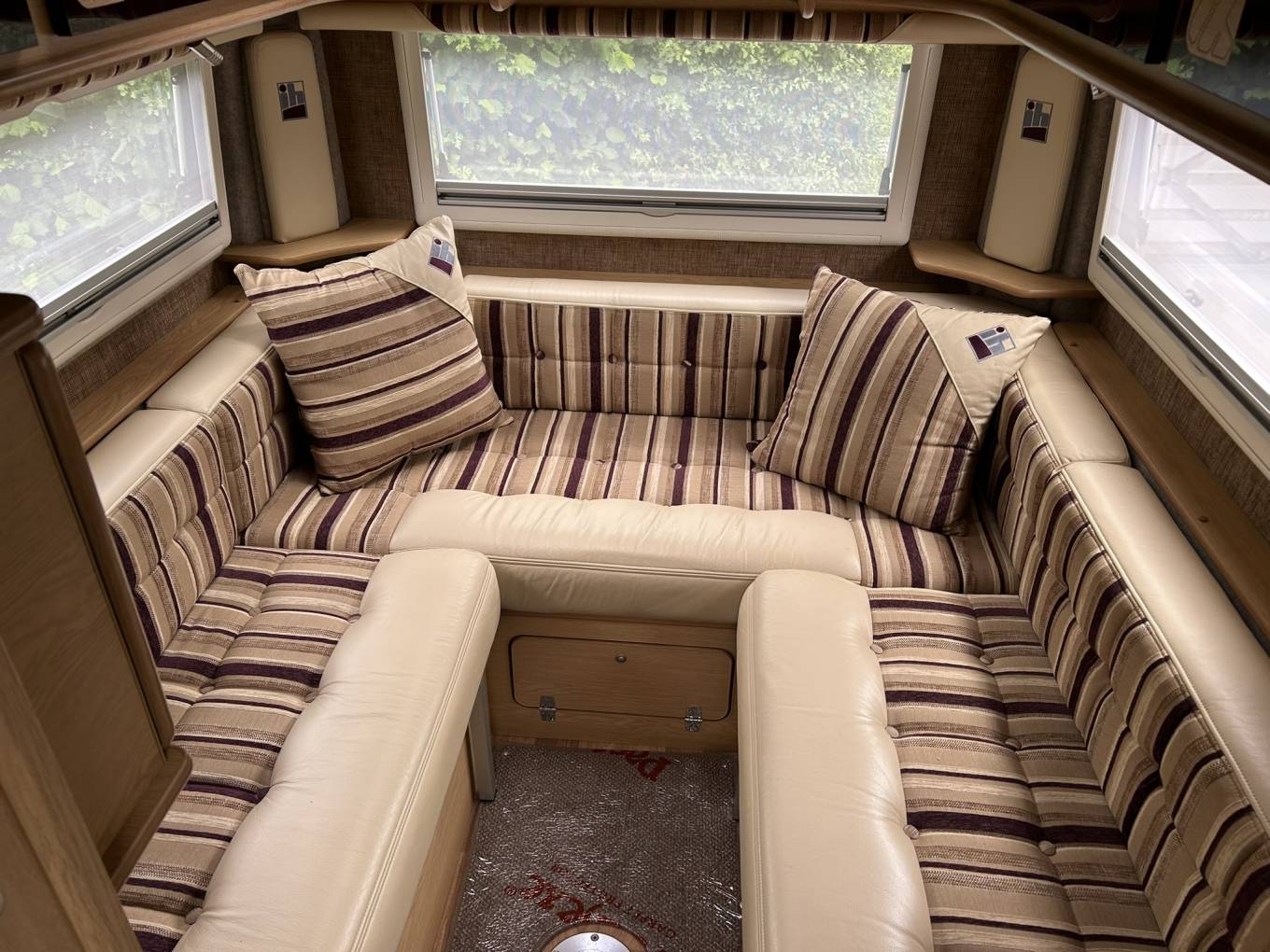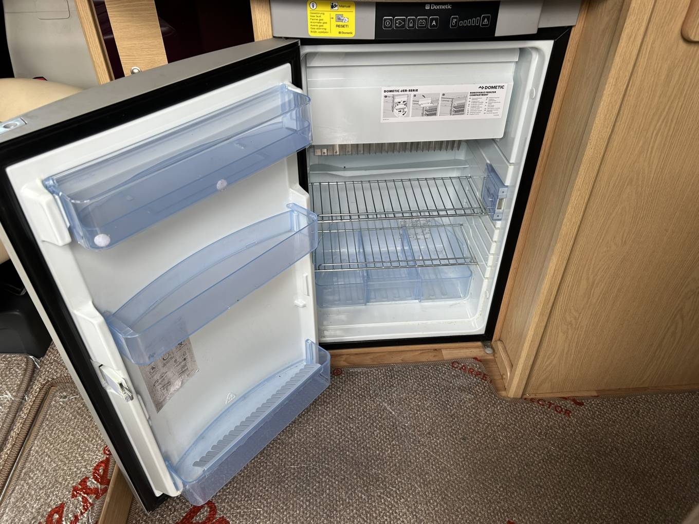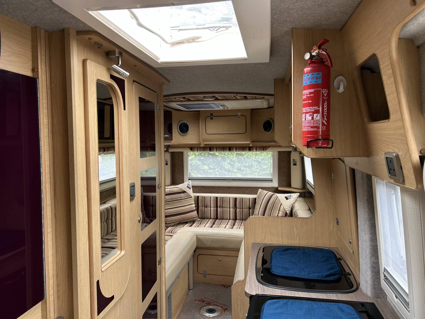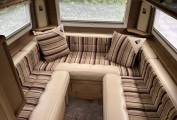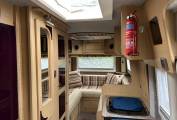 The kitchen comprises of grill and hob, fridge with freezer box, microwave and a sink with mixer tap. There is lots of storage for all your kitchen essentials and a neat little fold down additional worktop.