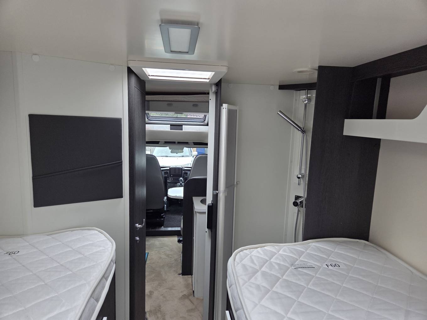 To the rear, you have twin single beds that can also be configured using the infills, into a large king size bed. There are impressive storage areas under each bed.