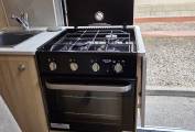 In the kitchen area we have a 3 burner Gas hob, Oven and Grill with work surfaces and prep area. There is also a 240/12v Compressor Fridge Freezer.