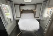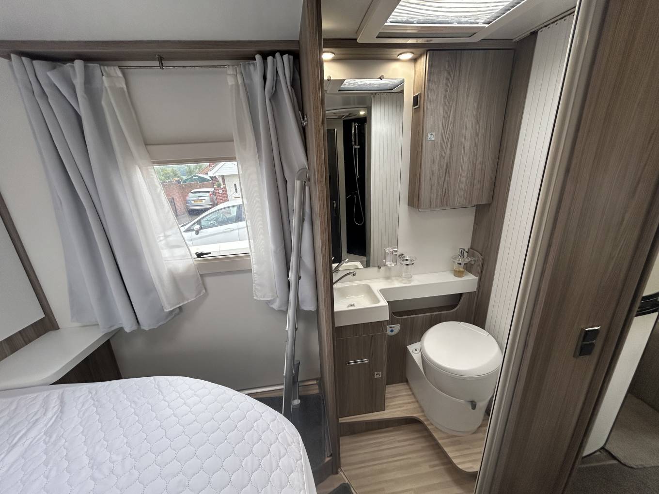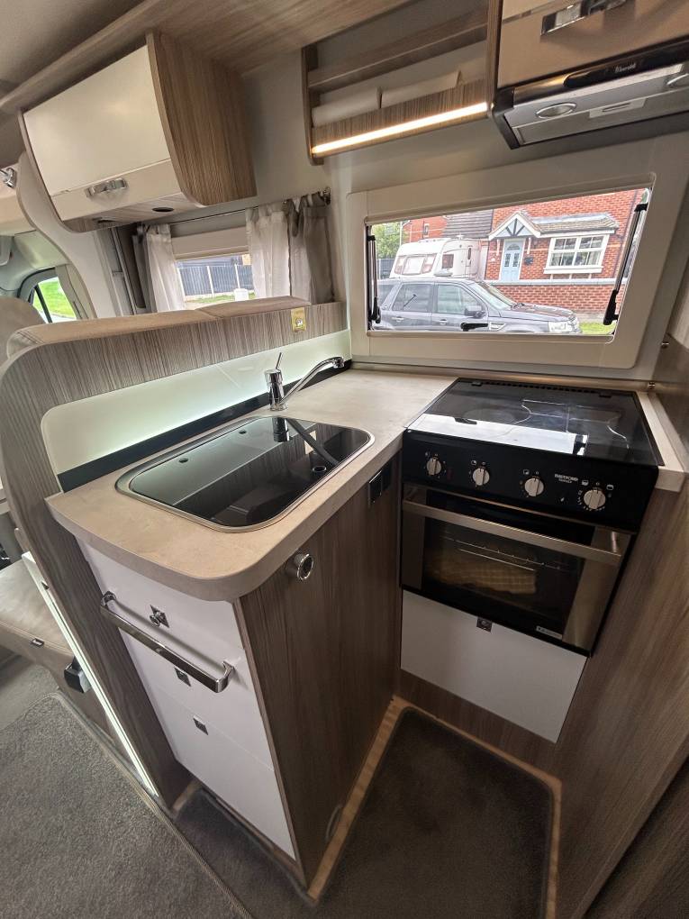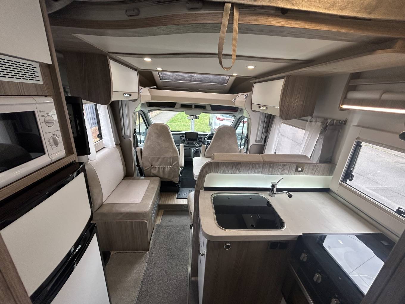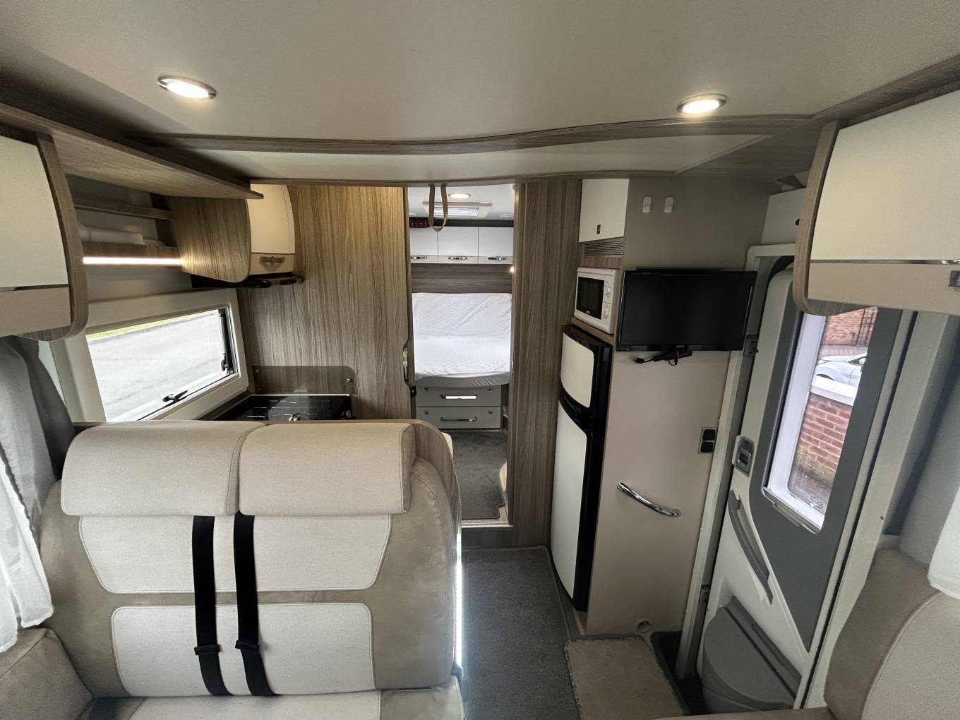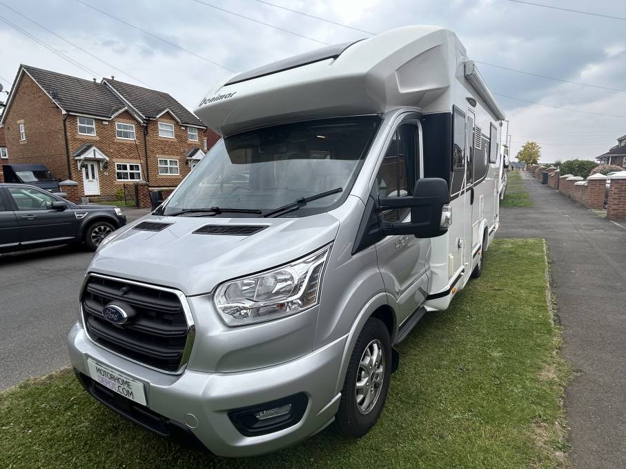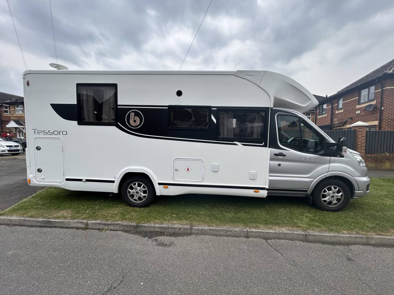 This Modern, attractively styled and fully equipped motorhome is the Benimar Tessoro 494, on the Ford 2 litre with 170bhp, latest Habcheck in March “ ALL CLEAR”, you can travel in comfort, the cab offers, cruise control, sat nav, steering wheel controls, blue tooth, built in blinds. Both seats turn to the dining area, to face the two forward facing seats with seatbelts and one side facing seat, where you can enjoy family time or simply enjoy a meal, the surrounding units give you plenty of storage, the large electric drop down double bed makes you a 4 berth including the rear island bed. Cook up a great meal in the well equipped kitchen area which has a oven and grill, sink and mixer tap, plenty of storage and workspace, gas and electric hob, extractor fan, 3 way fridge freezer and microwave. The bedroom has a really open feeling with an island bed, wardrobes either side, the bed raises so you can sit up and read if that's what you enjoy. The separate shower cubicle is the perfect place to freshen up after an exciting day out, the toilet has a cassette toilet, mirror and storage. It has mood lighting throughout, stay comfortable with the Truma heating and water system, the solar panel keeps you powered up. externally it has the wind out canopy, bike rack, BBq and shower point, access to the garage from both sides and gas bottle. This can be viewed in Barnsley by appointment, finance and part exchange are available.