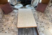 A removable dining table sits in the centre when required and a 6ft 10in x 4ft 3in double bed is easily made up here.