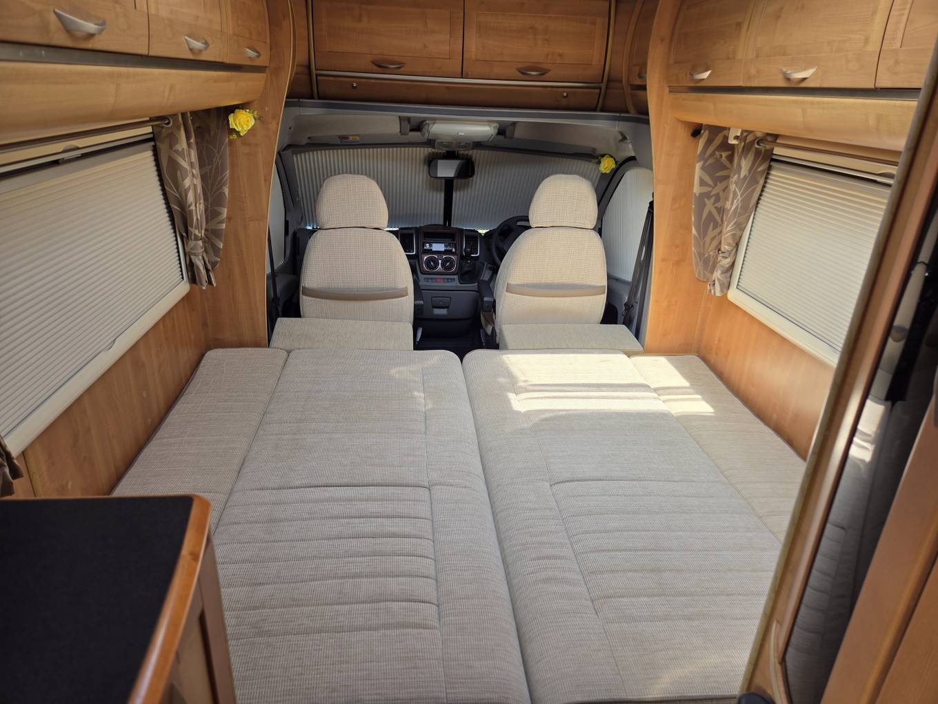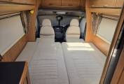 The ‘lounge/bedroom conversion layout’ offers travellers two berths with great flexibility e.g. you can have two single beds or the option to convert them into a generous large double bed—perfect for couples or solo travellers.