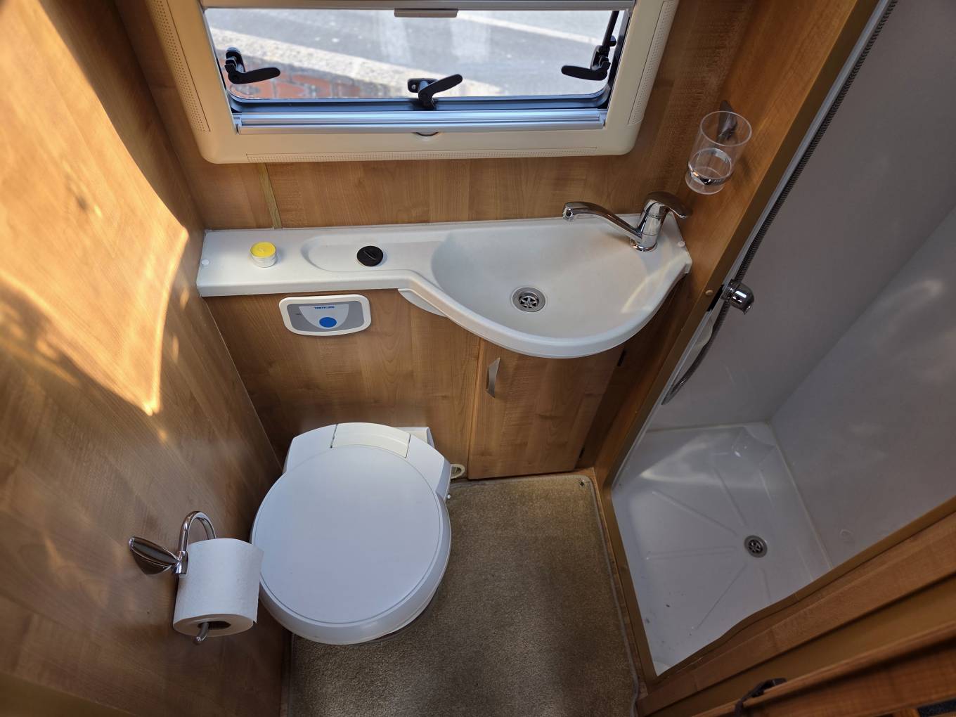 The washroom/bathroom features a separate shower cubicle, offering comfort and convenience wherever you travel.