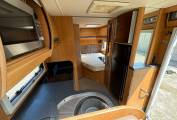 Layout - Starting at the rear, this model features the very sought after fixed double bed. Underneath the bed you have storage space that can be accessed from outside the vehicle as well as inside the van. To the side of the bed, we find the large washroom this is well equipped and comes with the desired separate shower cubicle, toilet cassette, vanity mirror, storage and washbasin.