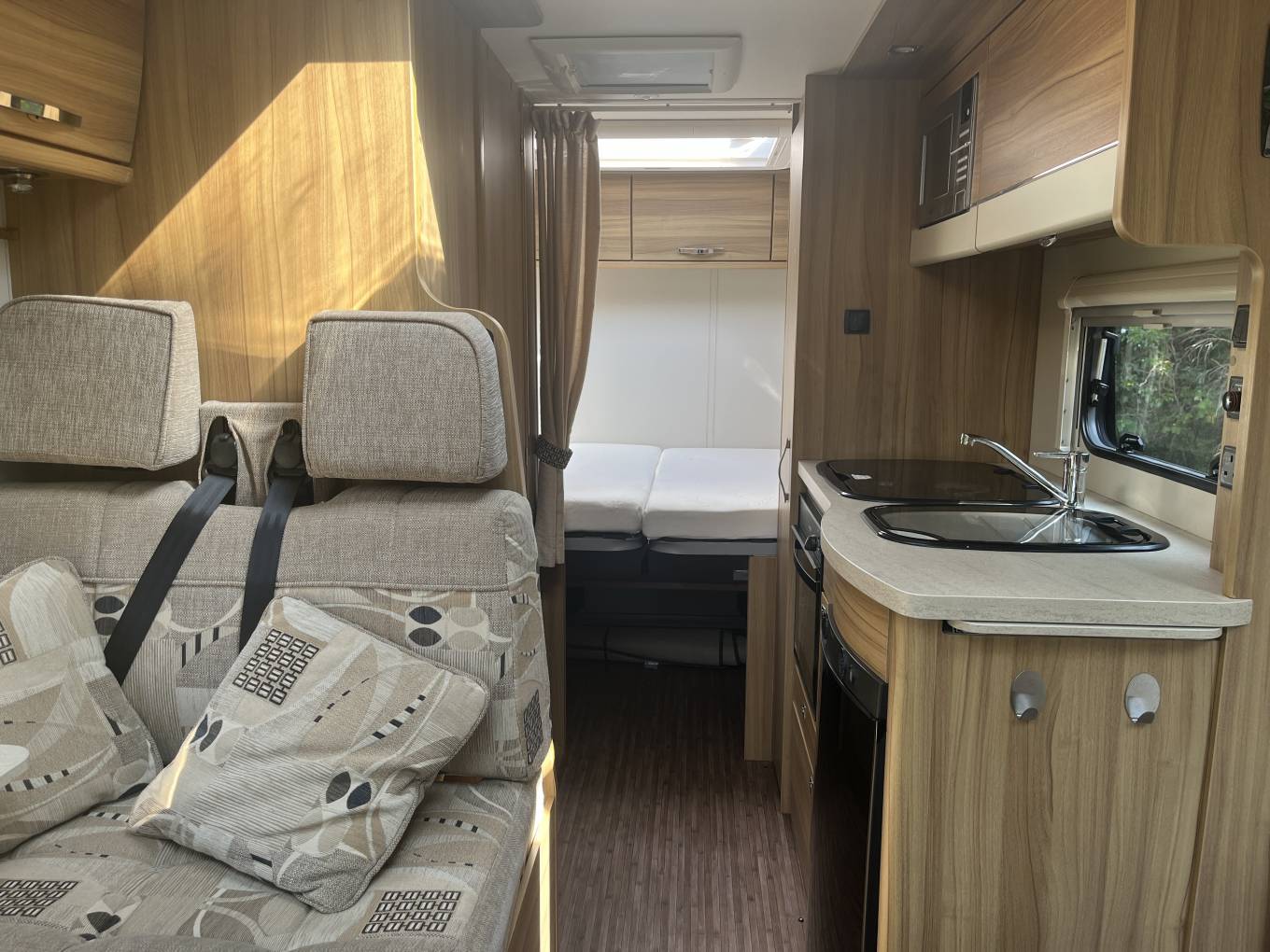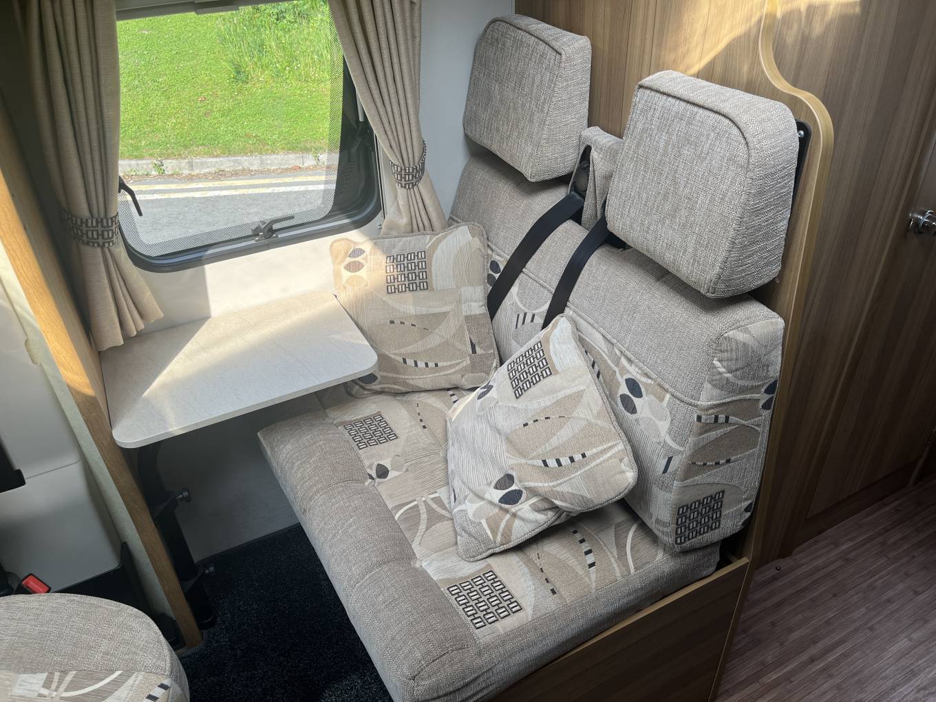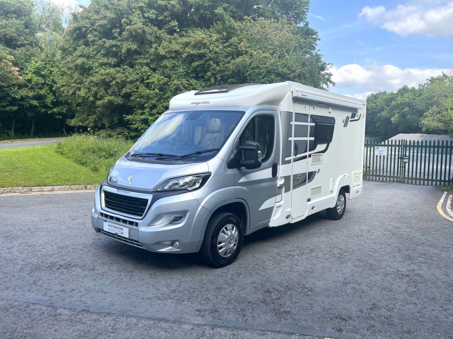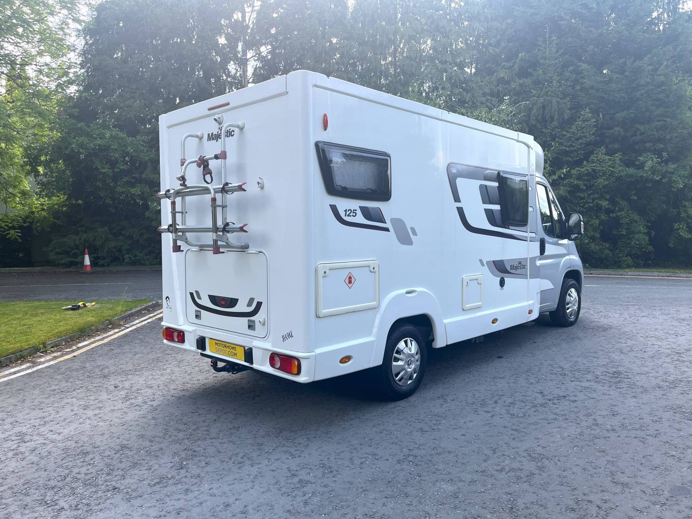 Here we have the wonderful, versatile, low mileage Elddis Majestic 125, 3 Berth, 4 Seatbelts which requires a Standard Driving License as it has a gross weight of 3300 kg. All in a 6 metre motorhome. Situated at the front the dinette lounge can seat 4 people and converts to a single bed. At the rear is the fixed double bed that opens out to create more garage space and can be accessed from the outside The kitchen comes with 3 way fridge, grill, hob, and sink. The washroom comes with cassette toilet, wash basin, and shower.