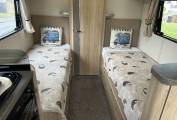 As you move to the rear of the van you will find 2 fixed single beds with storage below and locker space above.