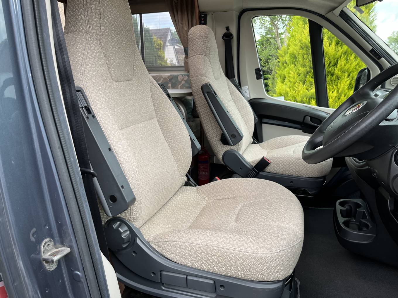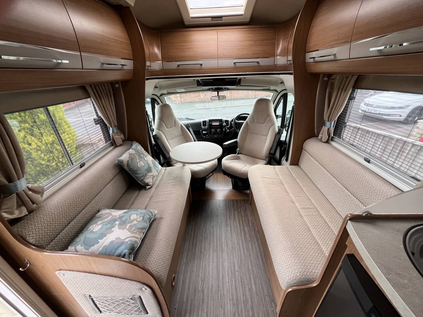 Autotrail Mohawk, 4 Berth with Fixed Rear Bed and Large Garage. This motorhome has been well maintained and cared for and is in beautiful condition throughout, it is built on the Fiat Ducato with 2.3 engine and has 1 previous owner. At the rear is the large fixed bed, forward from this is the bathroom with separate shower compartment. In the centre there ia a well equipped kitchen including fitted microwave and at the front is the lounge with large settees and 2 captains seats. It comes with Cab Air Con, Cruise Control, Cat 1 Alarm, Rear Camera, Alloy Wheels, Gas Refil System, Blown Air Heating, 2 TVs, Canopy Awning, Tow Bar, Solar Panel, Bike Rack and BBQ Point. An excellent example, available for viewing by appointment in Garstang, call for more photos, videos, and information.