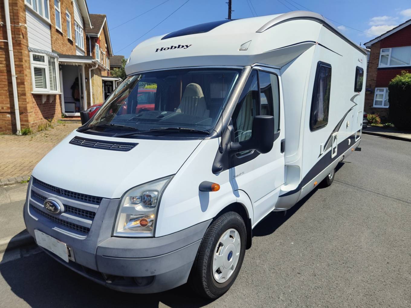 This is an outstanding and very low mileage example of the fabulous German Built Hobby Siesta 65tl. This lowline 3 berth features fixed singles to the rear, a well equipped kitchen and bathroom to the centre and a front dinette area that utilises the 2 rotating Captains seats. These well built motorhomes are very well equipped in standard form but this example includes the following. 120 w solar panel, towbar, satellite dome, tv, Airpro inflatable awning and a reverse camera. Based on the excellent Ford Transit chassis, this 6 speed manual derivative has the desirable cab air con and cruise control. 13k miles from new with an MOT until march 2026. Excellent history and only 2 owners from new. Based in Kent and more pictures available.