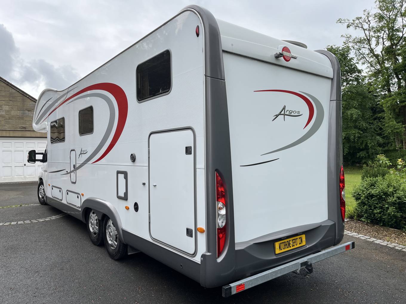 Burstner Argos A747, Luxury 6 Berth with Fixed Rear Bed and Large Garage. This motorhome is built on the Fiat Ducato chassis with 3.0 engine, it has been well maintained with one previous owner, current damp report and just 27,615 miles on the clock. This is a quality built German motorhome with a beautifully finished interior and is in excellent condition throughout. At the rear there is a fixed bed, under which is the large garage and forward from this is the bathroom with separate shower compartment. In the centre there is a well equipped kitchen, including a fitted microwave and at the front is the lounge area with large settees and there is another large bed over the cab. It comes with many useful extras including Habitation Air Con, Alde Heating, Rear Camera, Alarm, Tow Bar and Canopy Awning. It also comes with Cab Air Con, Cruise Control, 6 Seat Belts, Gas Bottle, 2 sets of keys and 6 new tyres. A stunning motorhome available for viewing by appointment in Preston, call for more photos, videos and information.