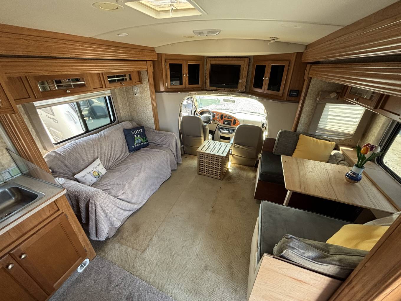 This Automatic RV is based on the Ford chassis with a 6.0 litre petrol engine. The overall length is 9 meters and the RV weighs 6083KG so requires a C1 license to drive.