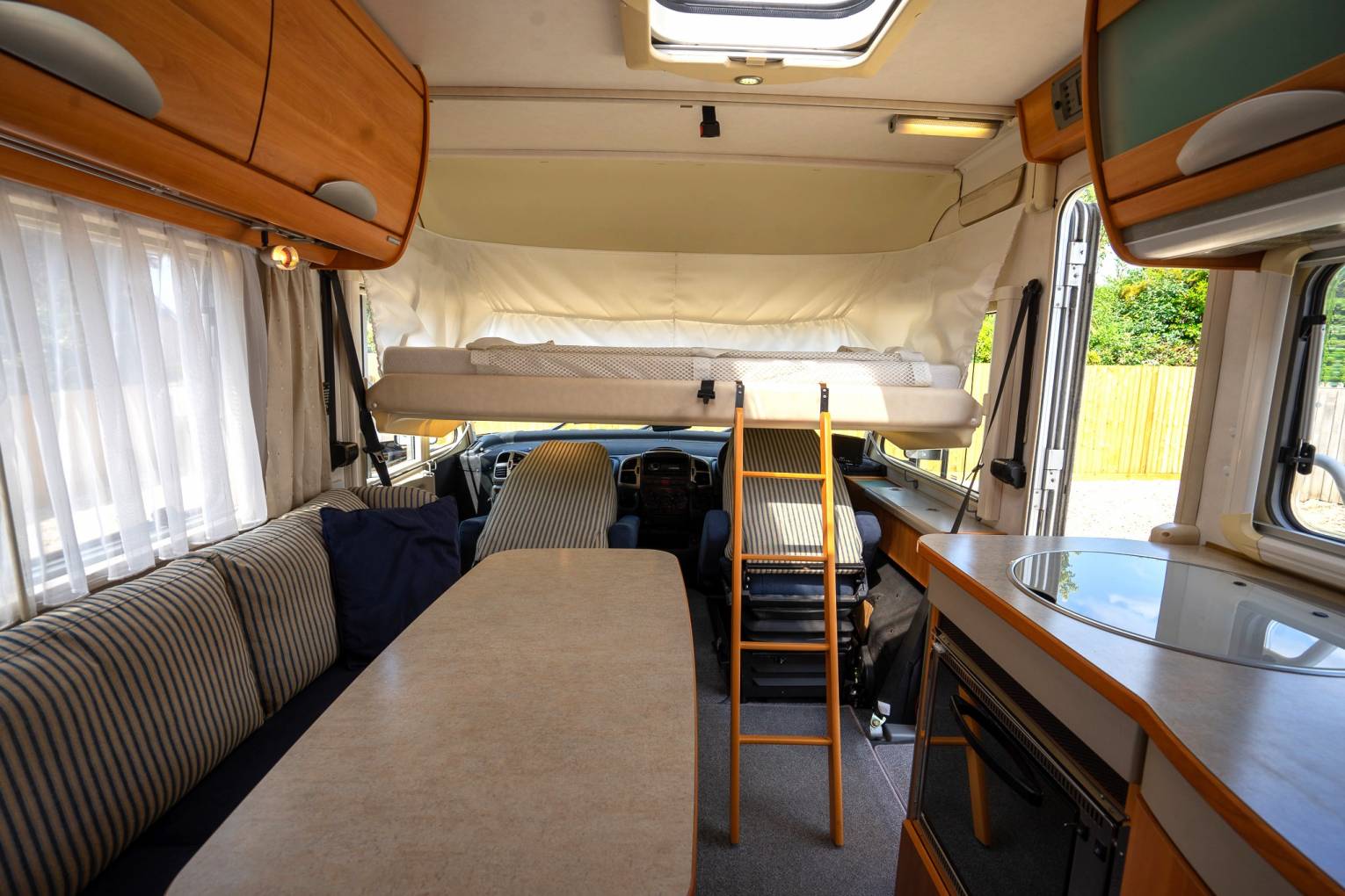 At night the comfortable over cab drop-down bed offers a permanently made-up bed and the long Sofa of L Shaped lounge can form a 3 berth if required. The cab is fitted with pleated cab blinds and a high quality insulating Silver screen is also included.