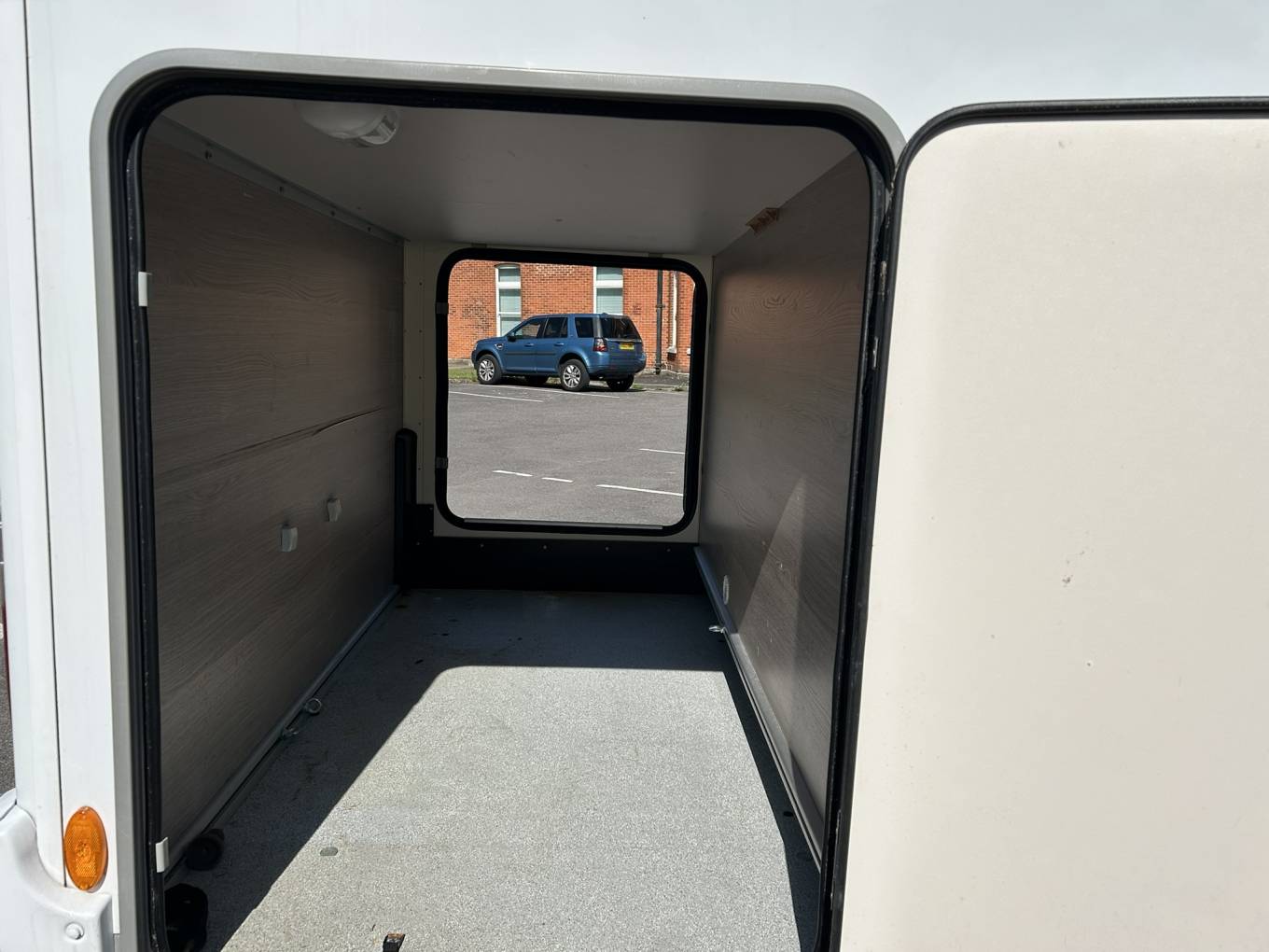 Outside the van is a large garage 800mm x 1070mm opening and a bike rack.