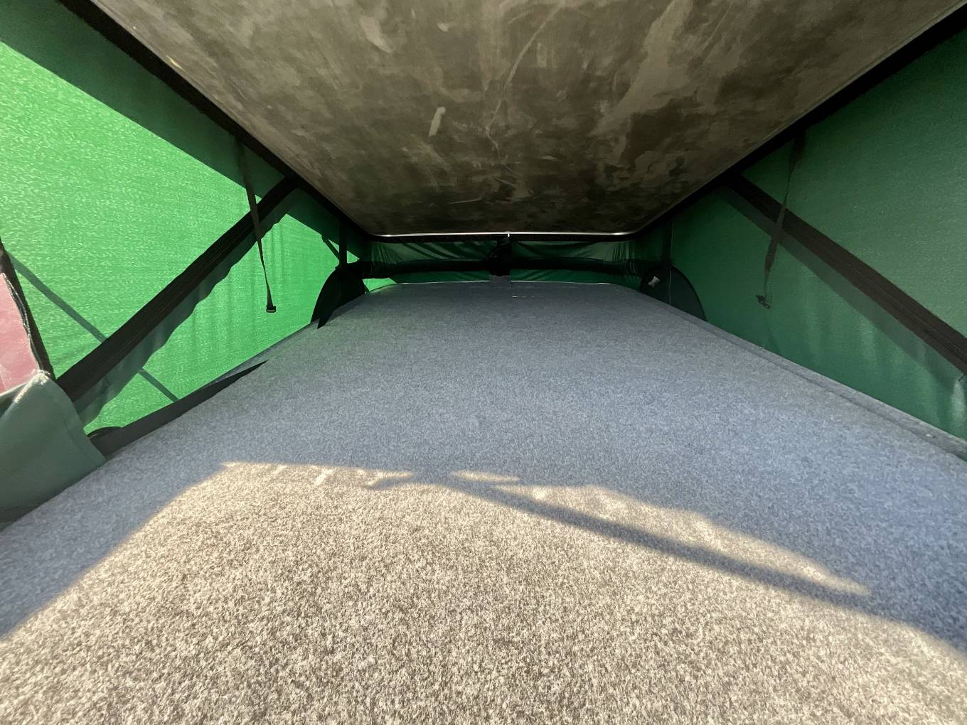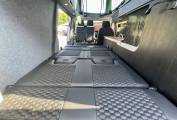 At night, the Alpine rock 'n' roll bed with underbed storage easily slides out to form a double bed. The Storm panoramic pop top also works on hydraulic struts and drops easily, allowing two more berths at the top.