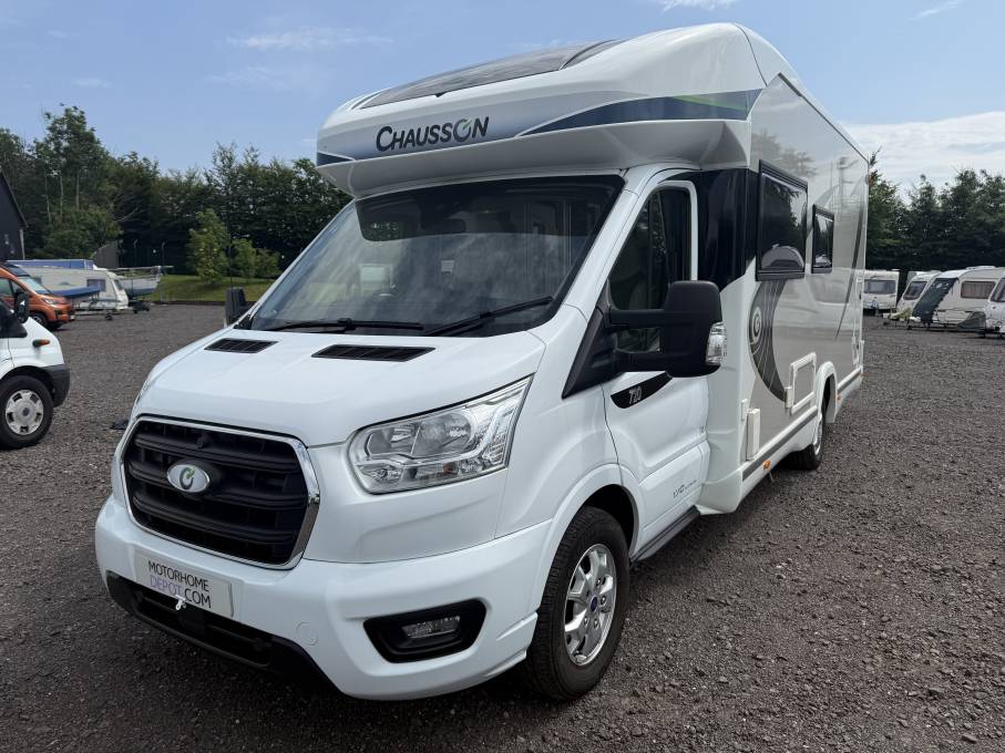 Motorhome Depot Glasgow is delighted to have for sale this superior, top quality 2021 Chausson 720 Titanium Premium Automatic Motorhome. This motorhome is beautifully designed and versatile, combining modern style with practical features, perfect for families or couples.