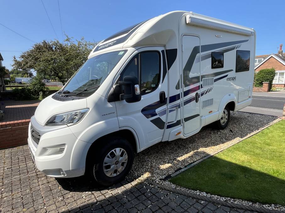Swift Escape 622, Compact 2 Berth with End Lounge. This motorhome has one owner from new with Full Service History, Current Hab Check, Long MOT and just 4,812 miles on the clock. At the rear is the lounge which makes into a large double bed, forward from this is the bathroom and a well equipped kitchen including fitted microwave. There is plenty of lockers for storage and a good sized wardrobe and the motorhome is in excellent condition throughout. It comes with Cab Air Con, Cruise Control, Rear Sensors, Immobiliser, DAB Radio, Blown Air Heating, TV Aerial, Canopy Awning, Tow Bar, Gas Bottle and 2 sets of keys. Available for viewing by appointment in Lytham, call for more photos, videos and information.