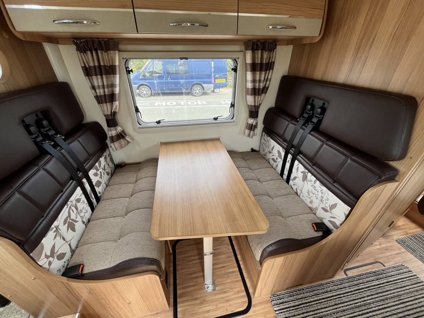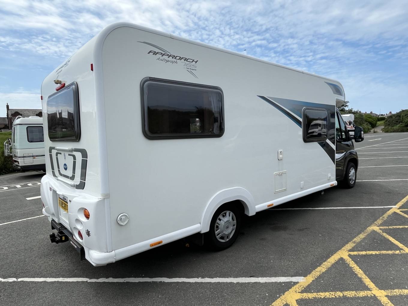 Bailey Autograph 765, 6 Berth with 6 Seat Belts, Rear Lounge and Electric Drop Down Bed. This motorhome is built on the Peugeot chassis with 2.2 engine, it has been well maintained and is in lovely condition throughout. At the rear is the lounge area which can be made into a large double bed, forward from this is the bathroom and a well equipped kitchen, including fitted microwave. At the front is the dining area and above this is the electric drop down bed. It comes with Cab Air Con, Cruise Control, Rear Camera, DAB Radio, Gas Low System, TV, Canopy Awning, Tow Bar, Solar Panel and 2 sets of keys. An excellent example available for viewing by appointment in Fleetwood, call for more photos, videos amd information.