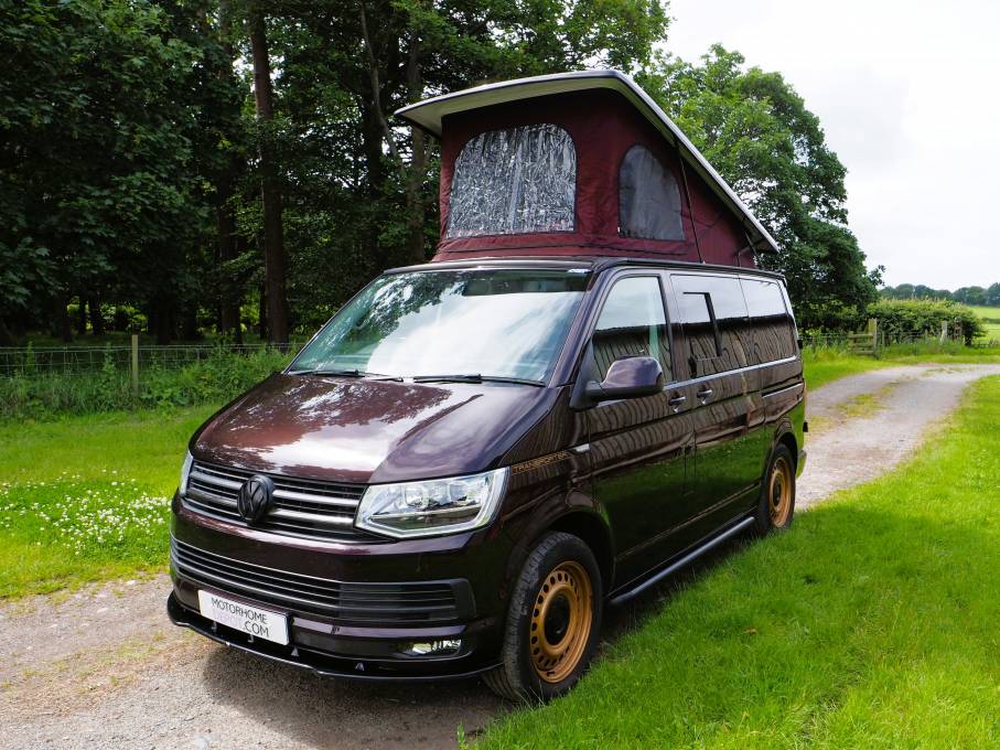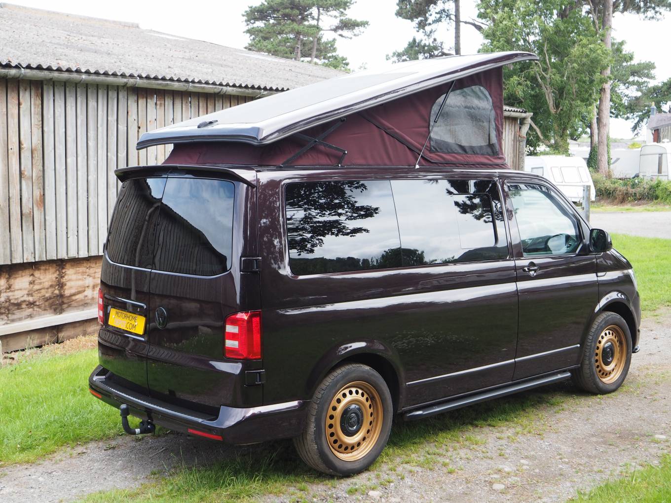 Motorhome Depot Wrexham and Gwynedd are pleased to offer this 4 berth, 4 belt campervan conversion. Based on the ubiquitous SWB Volkswagen Transporter it is based on a late 2017 T30 DSG Highline and comes with low mileage, a full service history and MOT until October 2025. A 12 month warranty is also included. Finished in the rare and striking Blackberry Metallic.