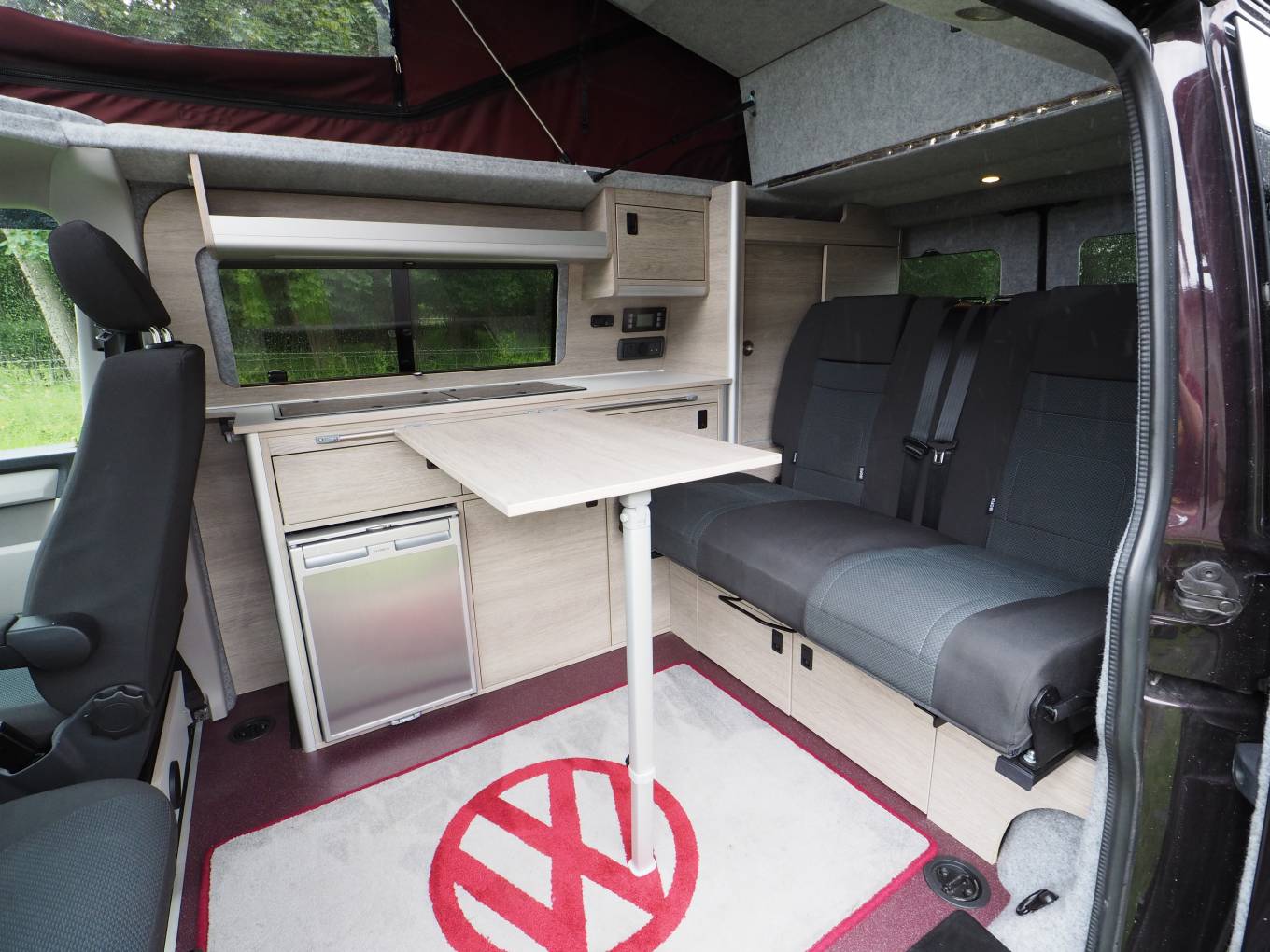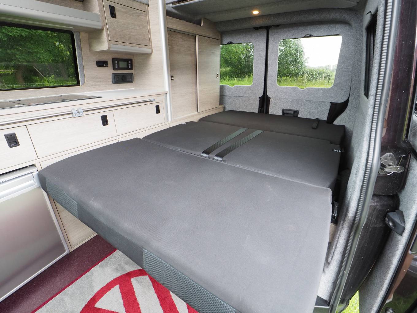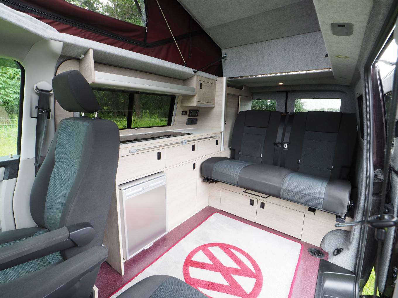 The original VW entertainment system has been swapped out for an Alpine head unit with 7" colour screen providing Apple and Android Car Play with DAB/FM radio. A rear reversing camera and sensors provides assistance for parking. A detachable Tow Bar is fitted to the rear. Driver and passenger comfort further enhanced with cab ac, cruise control and limiter and electric front windows and adjustable mirrors. A Rainbow Screens thermal screen blackout is included and an Atera Strada dL 2 bike tow bar mounted bike carrier is available by negotiation.
