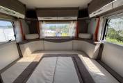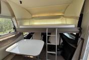 To the very rear of the motorhome is the u-shaped lounge for dining and relaxing which benefits from a freestanding table which neatly stows away for convenience. This area also nicely converts to another double bed.