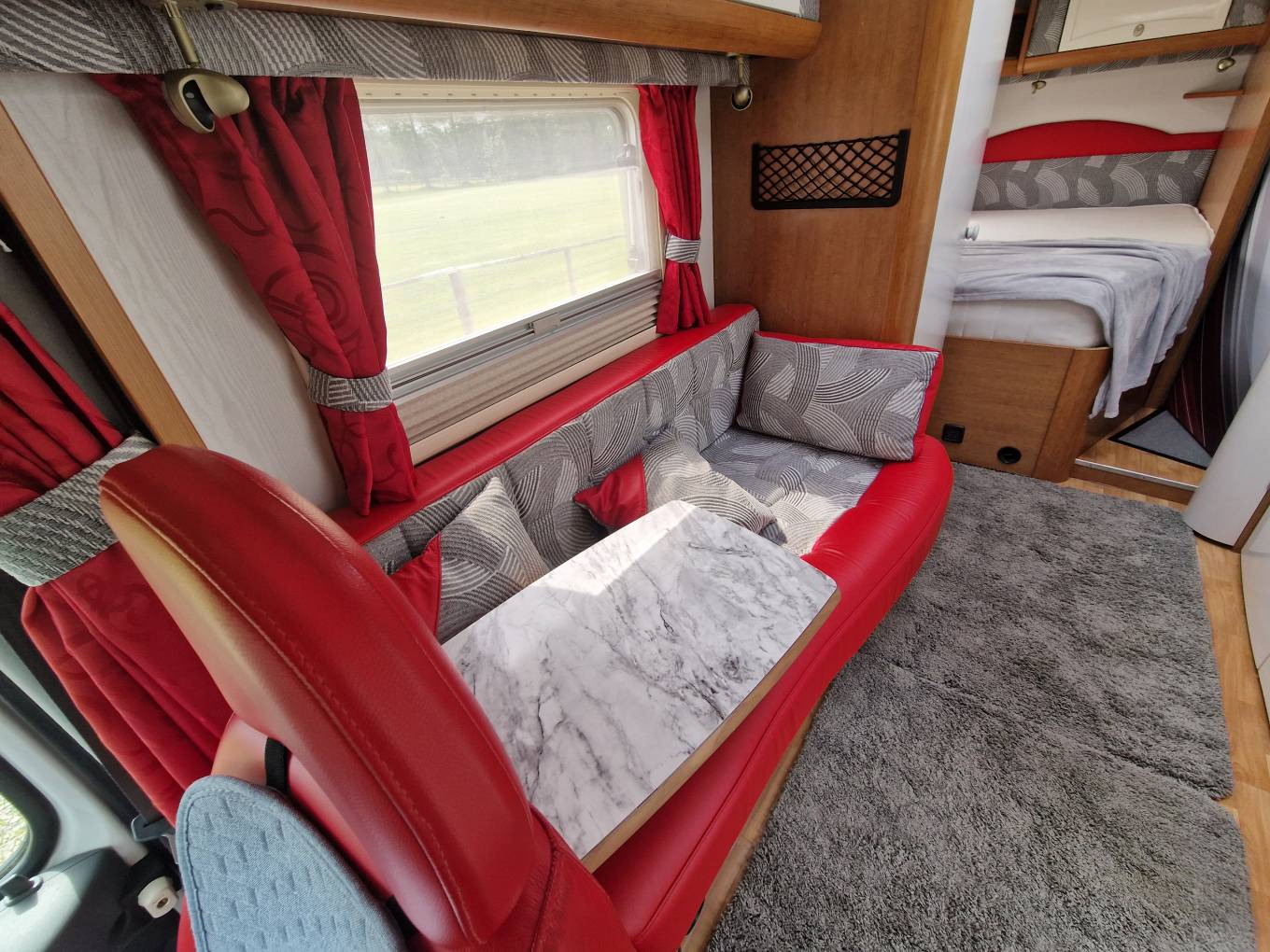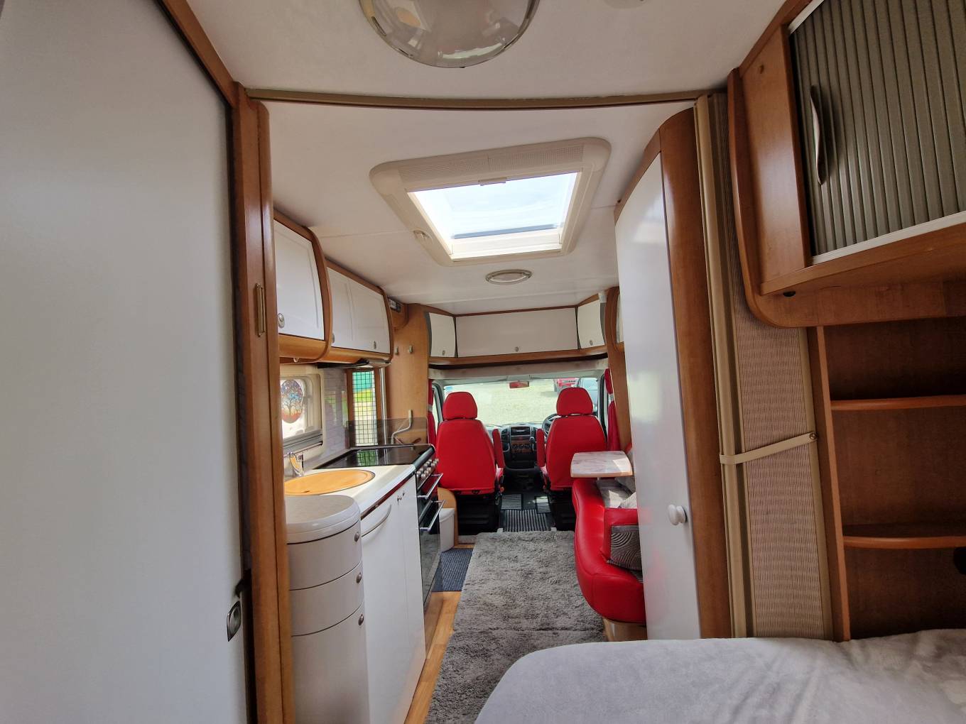 Very clean and tidy example of this model that has the feel inside of a much larger motorhome. There are twin bench seats at the front and with the Twin swivel captains seats, there is dining for up to five or six people.