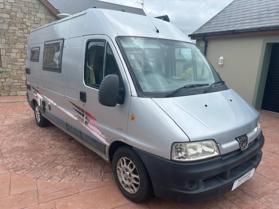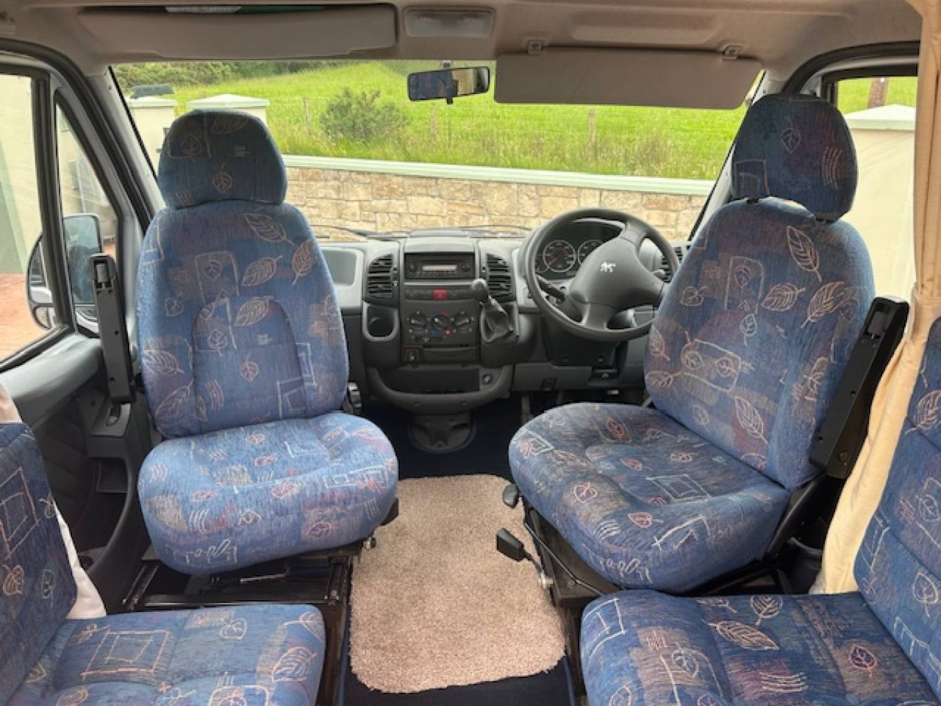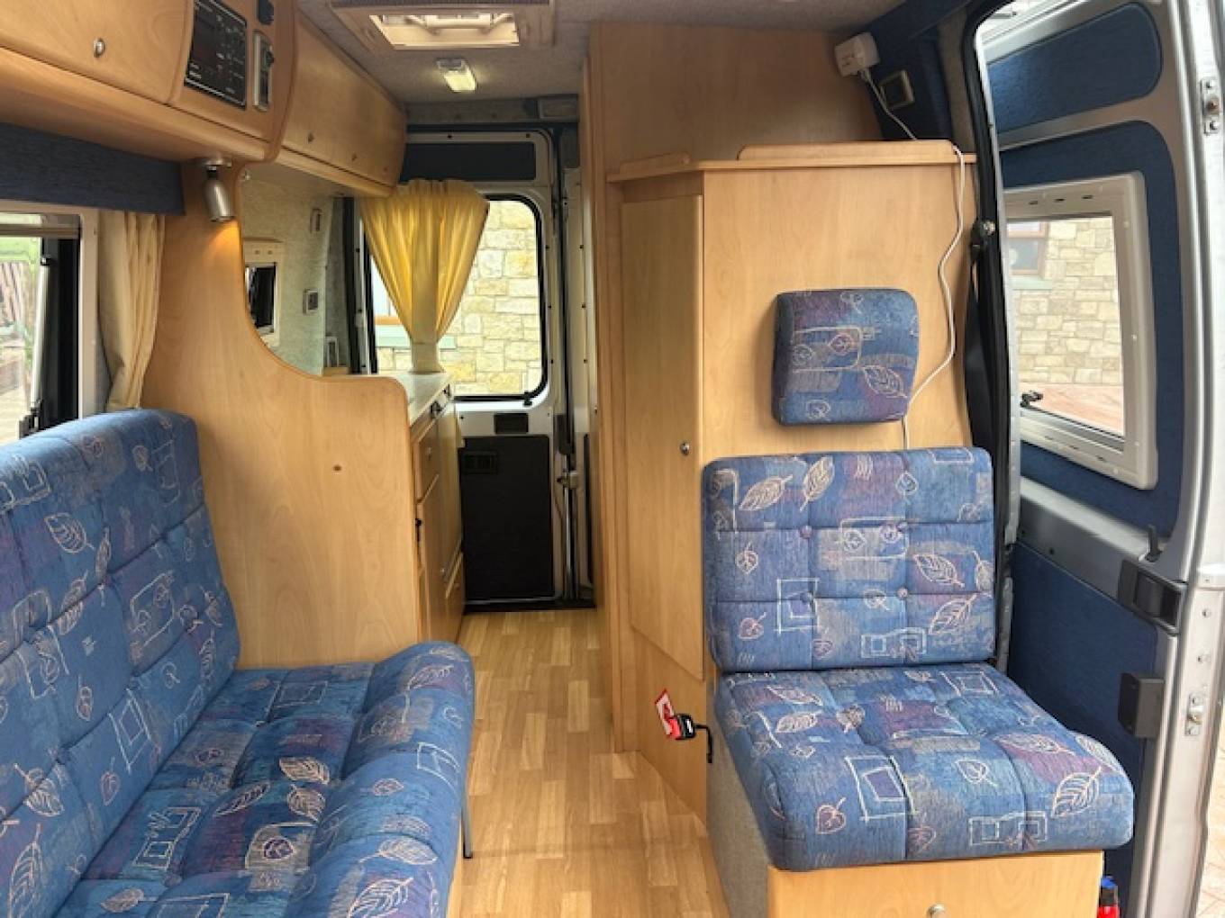 2005 Peugeot Boxer Firebrand by Devon Conversions for sale. This camper is 2 berth with 3 seatbelts. The vehicle has a length of 5.99m, a width of 2.02m and a height of 2.52m. This weighs in at 3300kg making it easily maneuverable and does not require C1 on your licence.