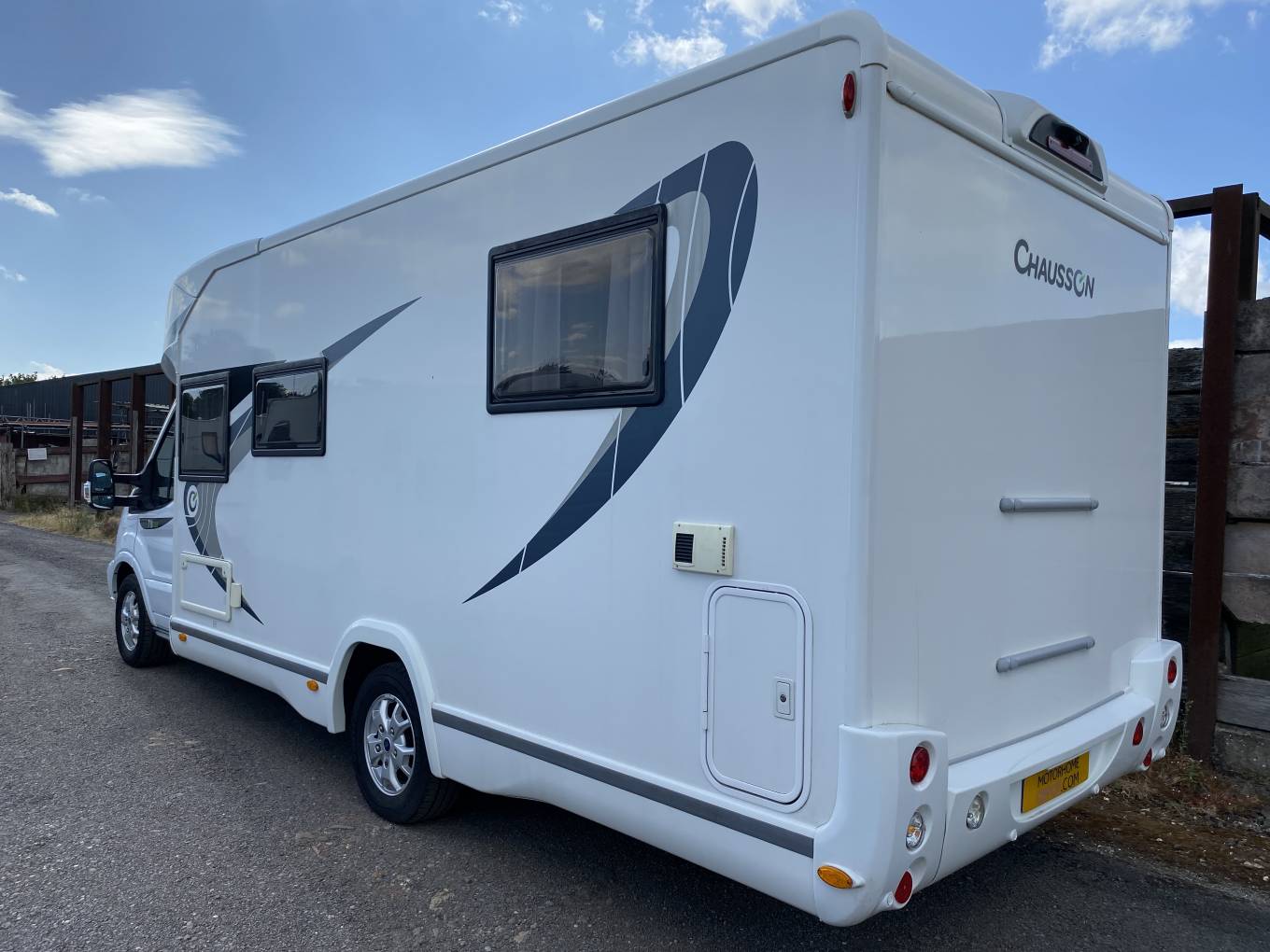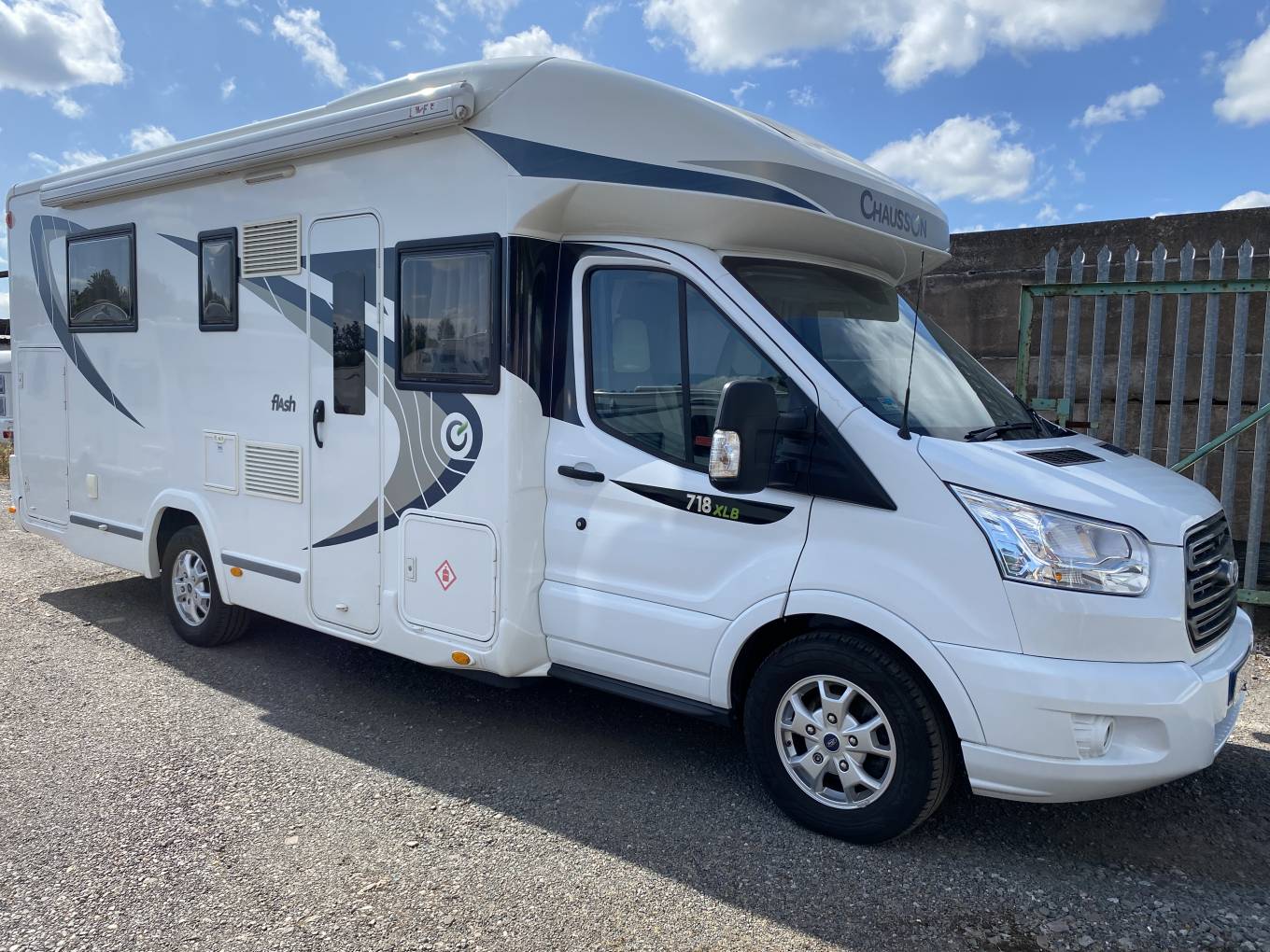 LOCATED IN NORTH WARWICKSHIRE is this CHAUSSON FLASH 718 XLB motorhome, first registered in July 2017, it is a 5 berth with 4 belts, low-profile motorhome, with the much sort after rear island double bed, over a rear garage and with a separate washroom shower and an electric drop-down double bed layout. Based on the ever-popular Ford Transit 2.0 litre Adblue diesel engine and chassis, with a 6-speed manual gearbox. It has only 11,917 miles on the clock. It had last mechanical service at 11,575 miles, MOT is valid until April 2026, latest habitation check done in June 2025, injectors have been replaced and cambelt also replaced on age in April 2025.
