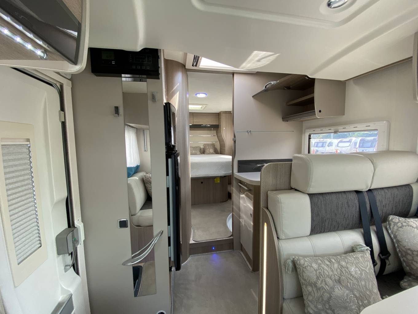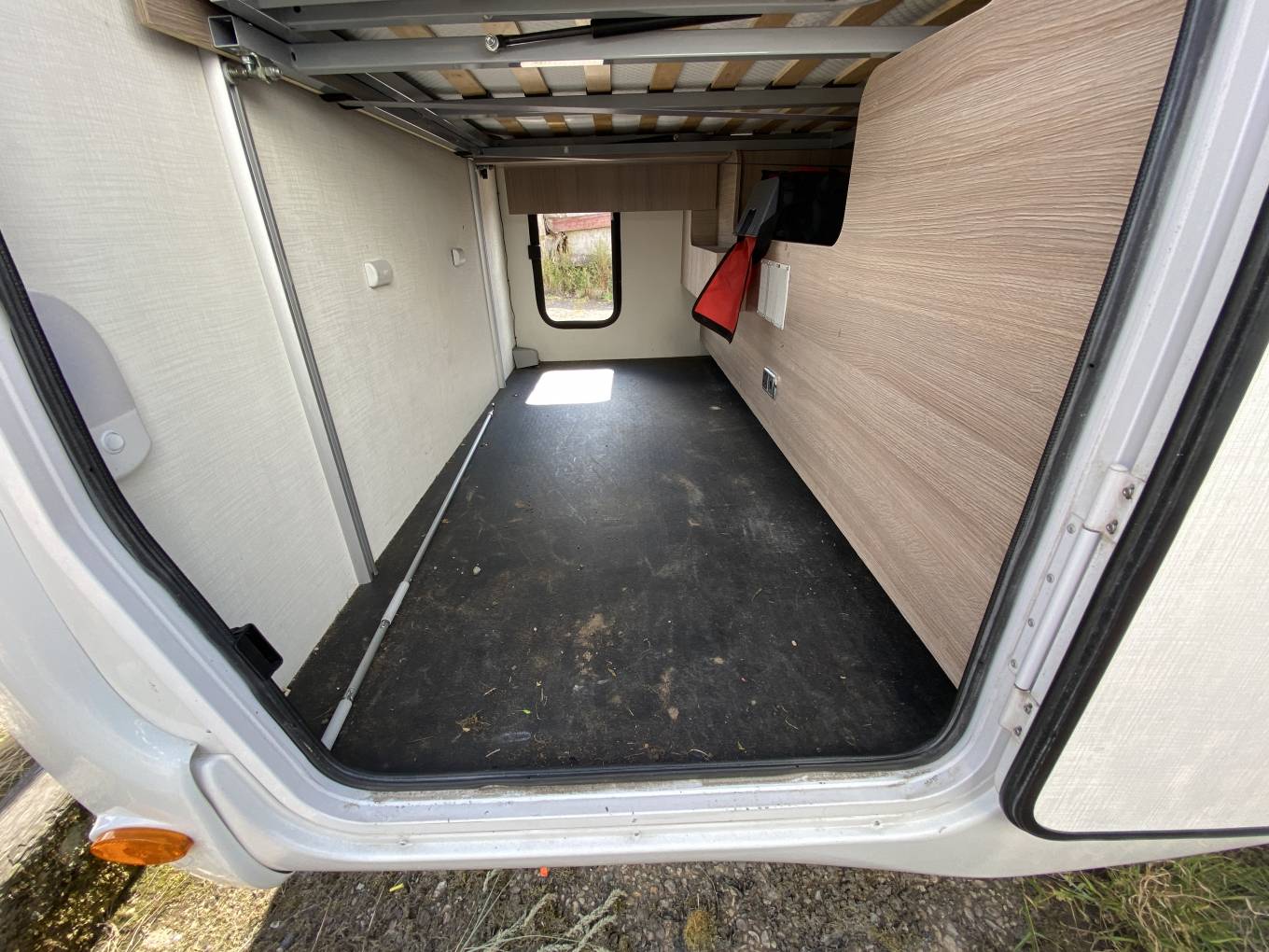 Outside there is a Fiamma wind out awning, full width rear garage with access from both sides, with light, heat and power, ideal for any large amounts of outdoor equipment, alloy wheels, solar panel, external BBQ point, awning light, reversing camera, audible rear parking sensors, factory bike rack fixing pre-installation, front fog lamps, mains hook up point and gas locker with space for two bottles.