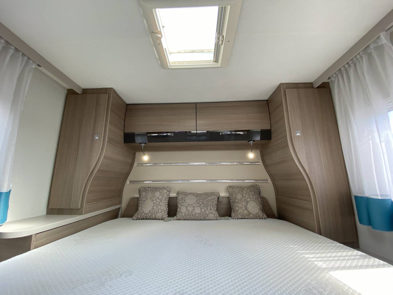 The rear island double bed has reading lights, USB ports, skylight, wardrobe space and lockers above.