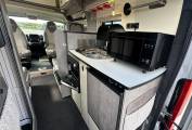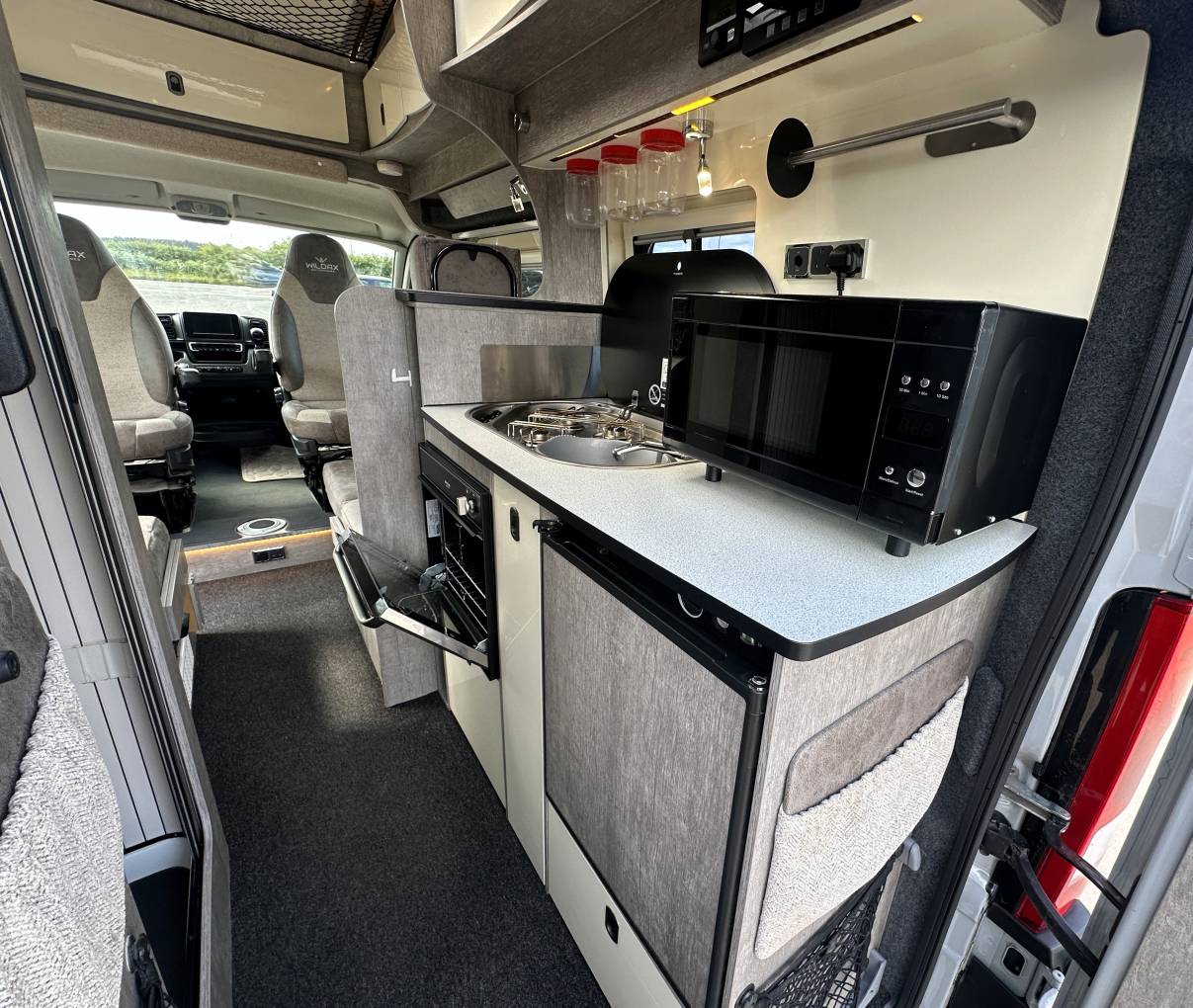 This fully functioning camper comes equipped with a kitchen, complete with a combined oven & grill, gas hob, microwave, 3-way fridge/freezer and sink with hot & cold mixer tap