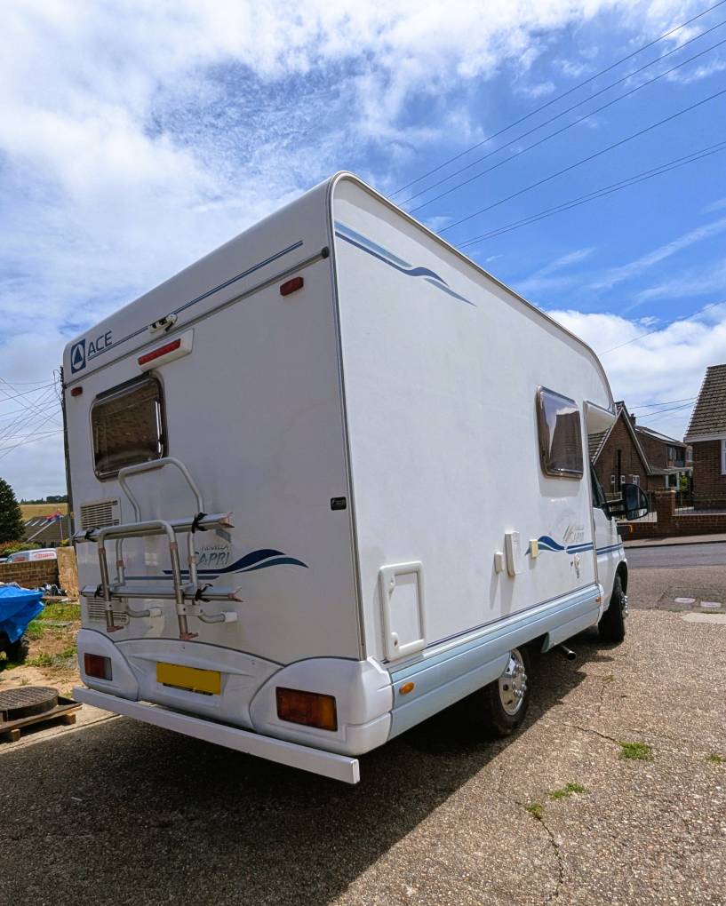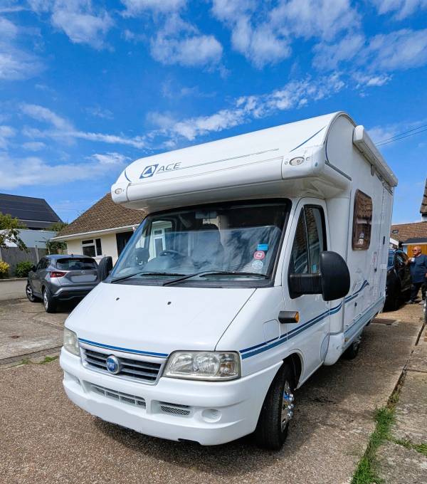 A compact at less than six metres long, very clean and well maintained Ace Capri on a Peugot chassis, with useful extras, view near Dover.