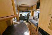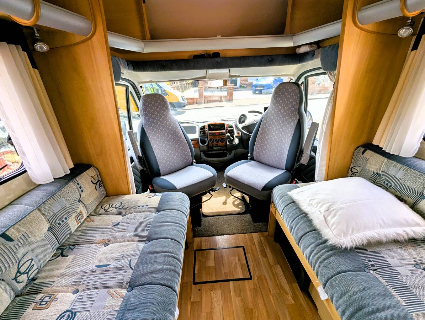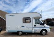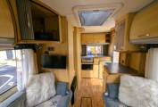 This lovely compact motorhome is ideal for single, or couple campers, nevertheless it offers social seating for up to six, with swivelling cab seats, and opposing sofas to the lounge mid section.