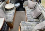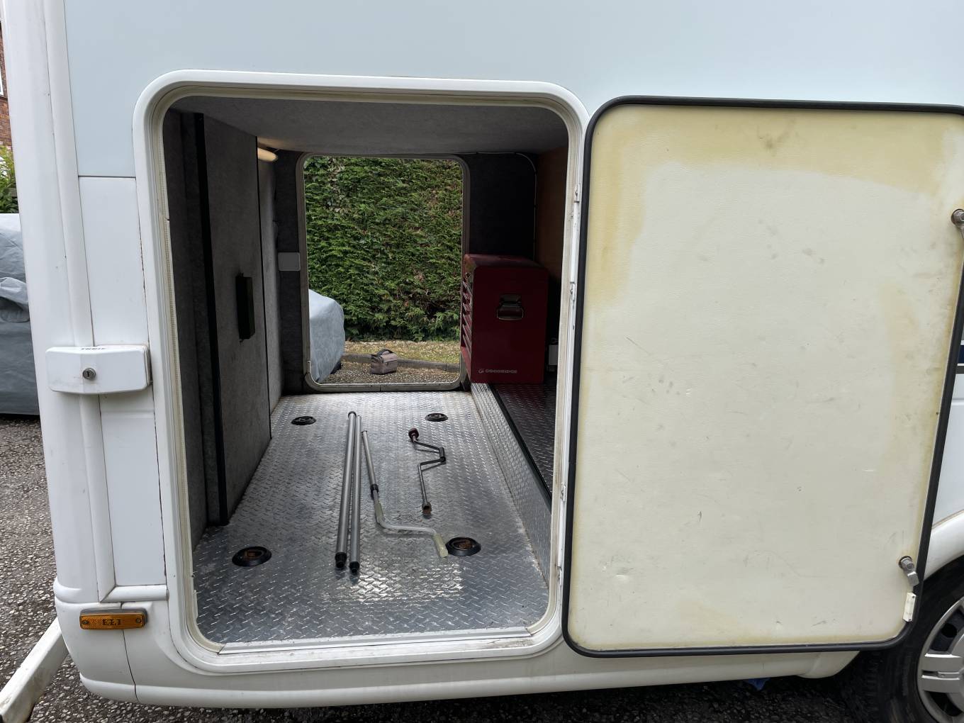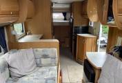 This spacious 4-berth layout includes a cosy fixed rear double and the generous lounge area converts into a double bed as well, perfect for couples or families. Inside, you'll find a fully equipped kitchen with oven, grill, 4-burner hob and a 3-way fridge, while the large end bathroom features a separate shower cubicle for added convenience. The Truma heating and hot water system ensures comfort all year round. There's ample storage space on the inside, including a wardrobe and overhead lockers and a passenger side captain’s seat to enhance the living area Outside there is that huge garage storage area, in addition it’s fitted with a wind-out awning, and tow bar, leisure battery, solar panel. It also includes built in Avtex WiFi router, TV with aerial, reversing camera, full set of curtains and blinds.