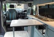 It's a 4 berth, 4 belted campervan with a R&R bed and additional double bed above in the forward-facing pop top roof. The front seats swivel to create a great area to relax in once you have reached your destination.