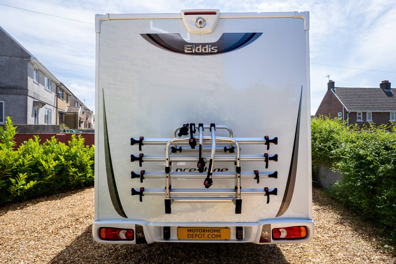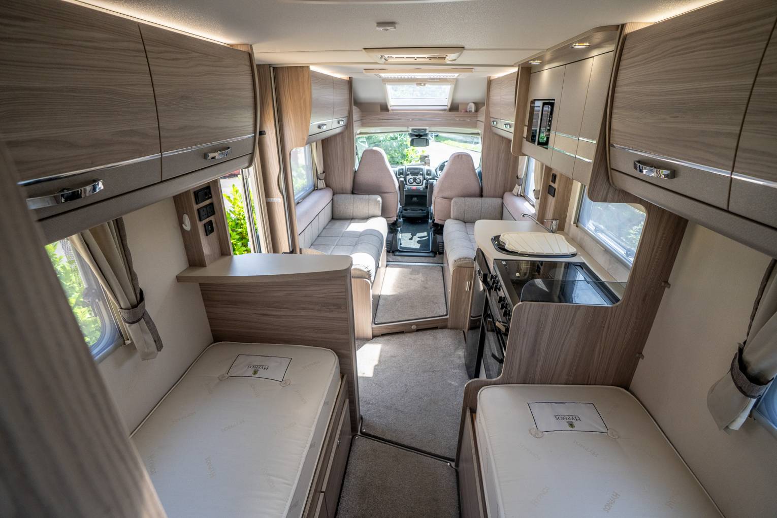 The sleeping area to the rear is where this vehicle really demonstrates its key strengths in style and luxury. The two single beds are fitted with upgraded Hypnos Mattresses, whilst the rear bathroom offers a full sized shower, washroom and toilet all in one, whilst still having enough space for a hanging wardrobe, to store towels, wet suits, clothes or just an additional location for your favourite tipple. On top of this, the prestige pack offers a wide range of additional extras to keep you on the road for longer without sacrificing comfort. The solar panel, leisure battery, Omni fan, external bbq/shower/power points, and 4 bike carrier adds functionality to style and compliments this stunning vehicle - making it the complete package, ready to depart as soon as you are.