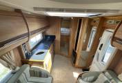 Inside, the lounge offers a bright, airy space to relax – perfect for stretching out after a day on the road. It easily converts into a spacious double bed, and there’s a comfy overcab bed too. The sought after rear over garage bed provides the final of the 6 berths