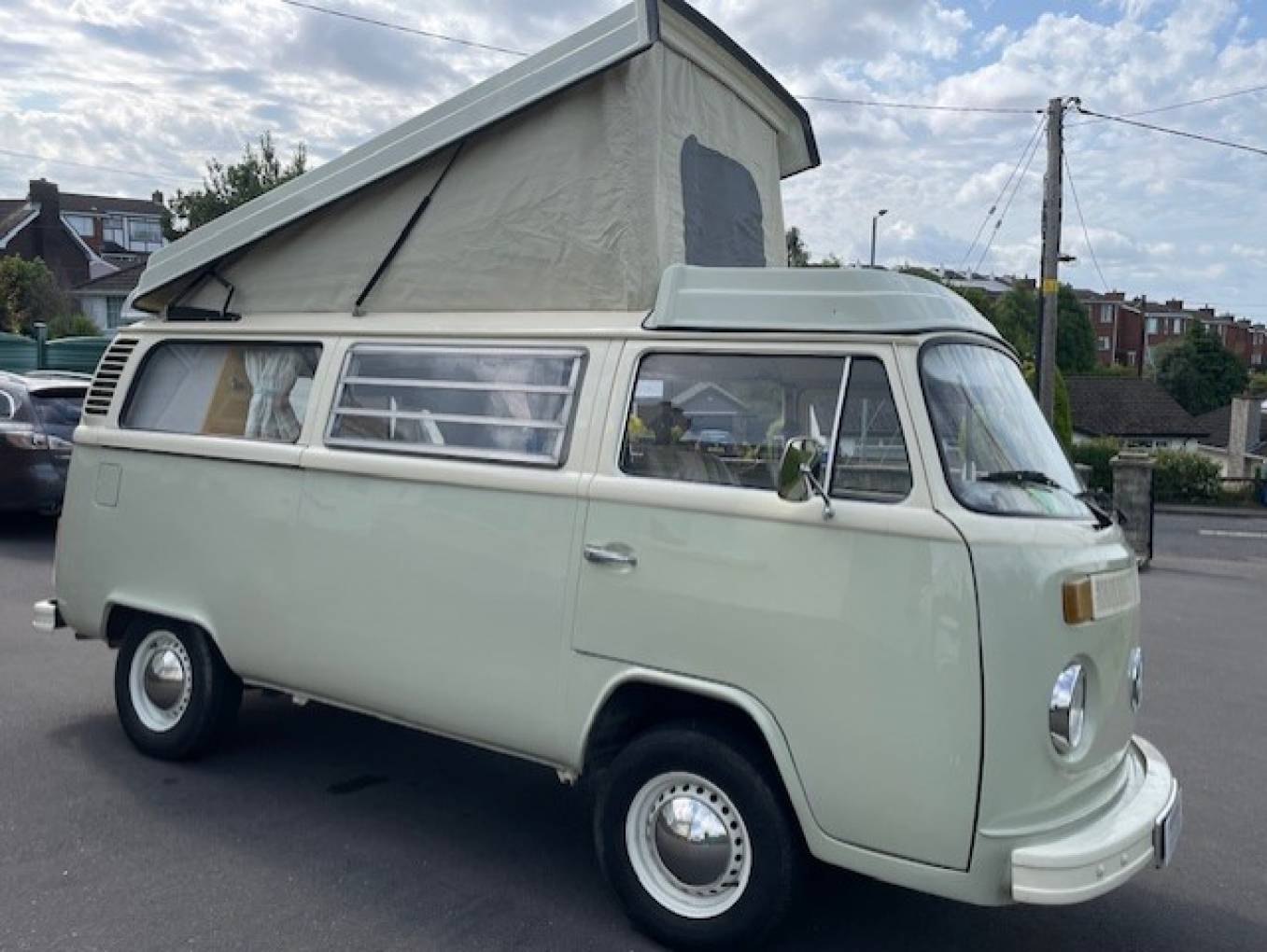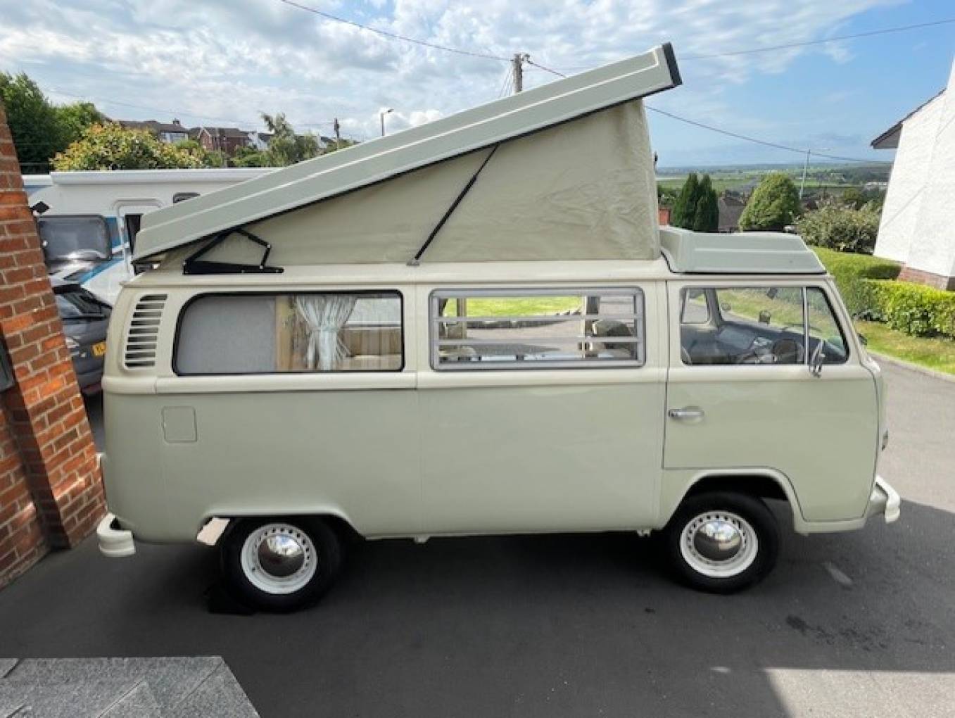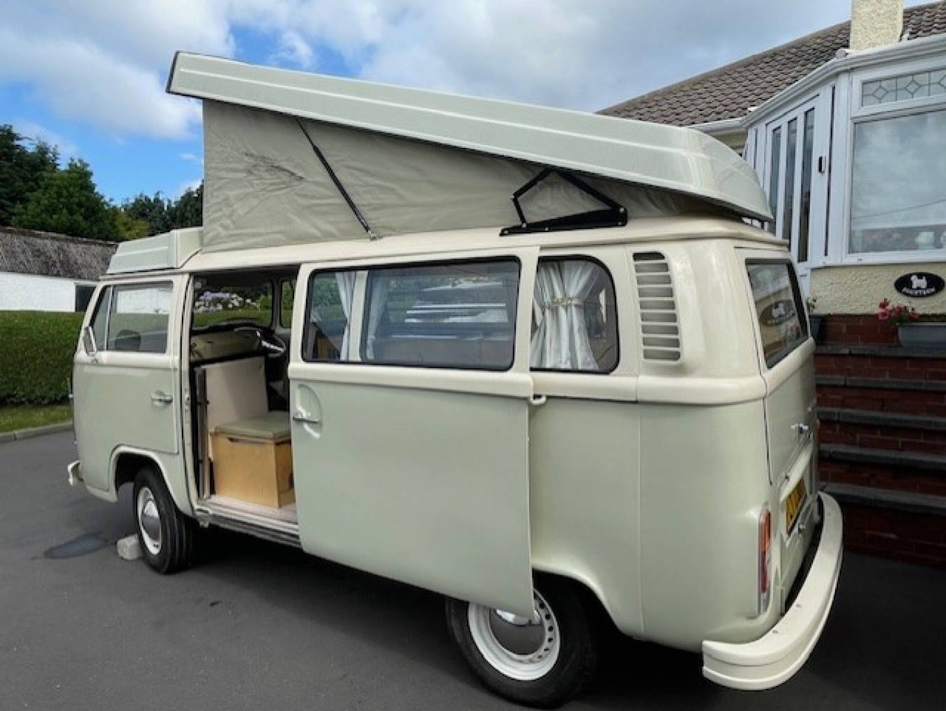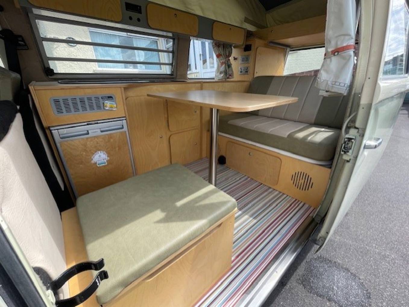 1979 VW TRANSPORTER BAY WINDOW CAMPERVAN FOR SALE. This unique classic campervan has been fully restored and has a new 1600cc engine fitted. The full refurbishment includes a new pop top roof and the interior has been fully replaced. A brand new wiring system has been installed and the heating throughout the habitation area runs on diesel.