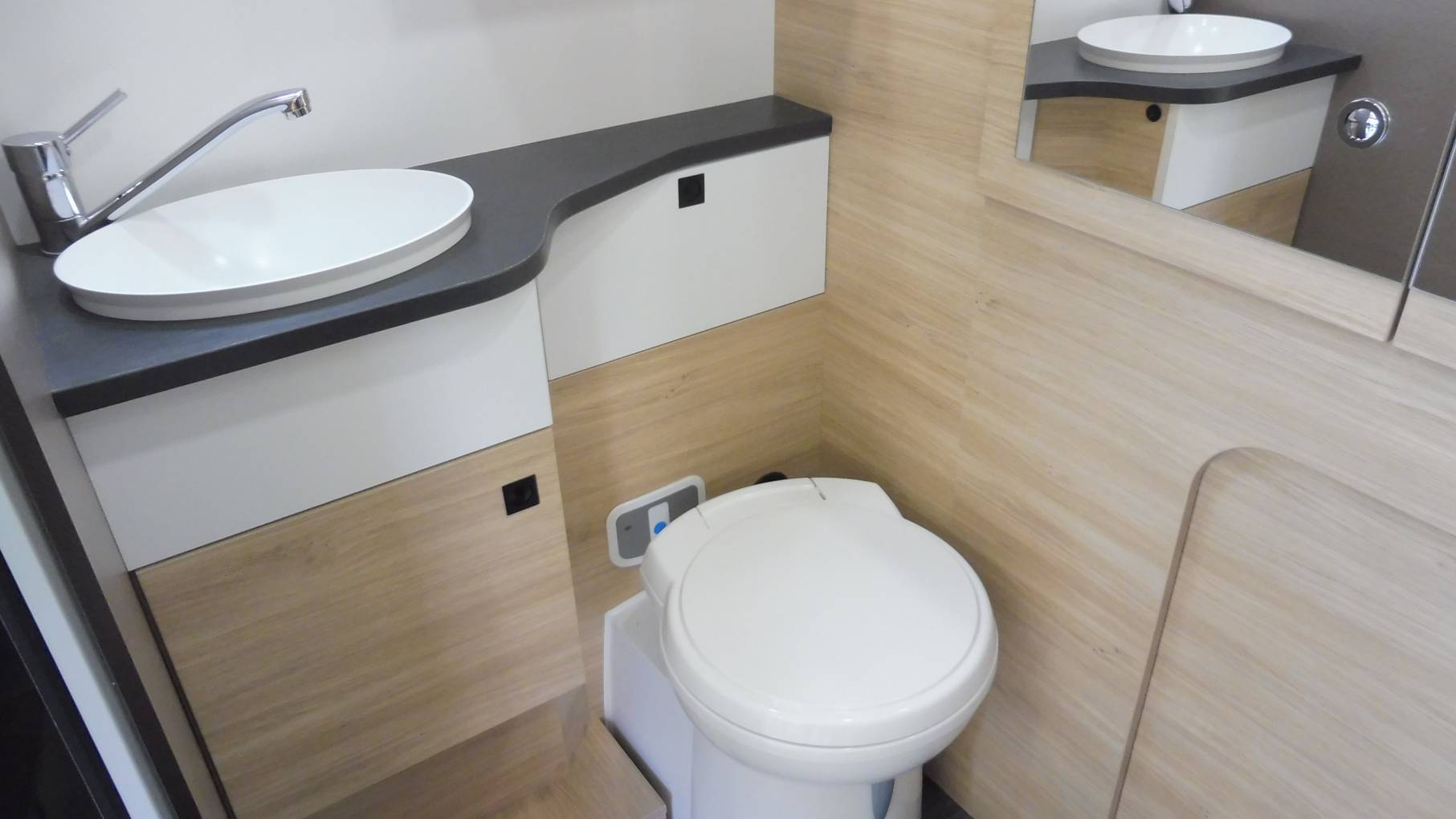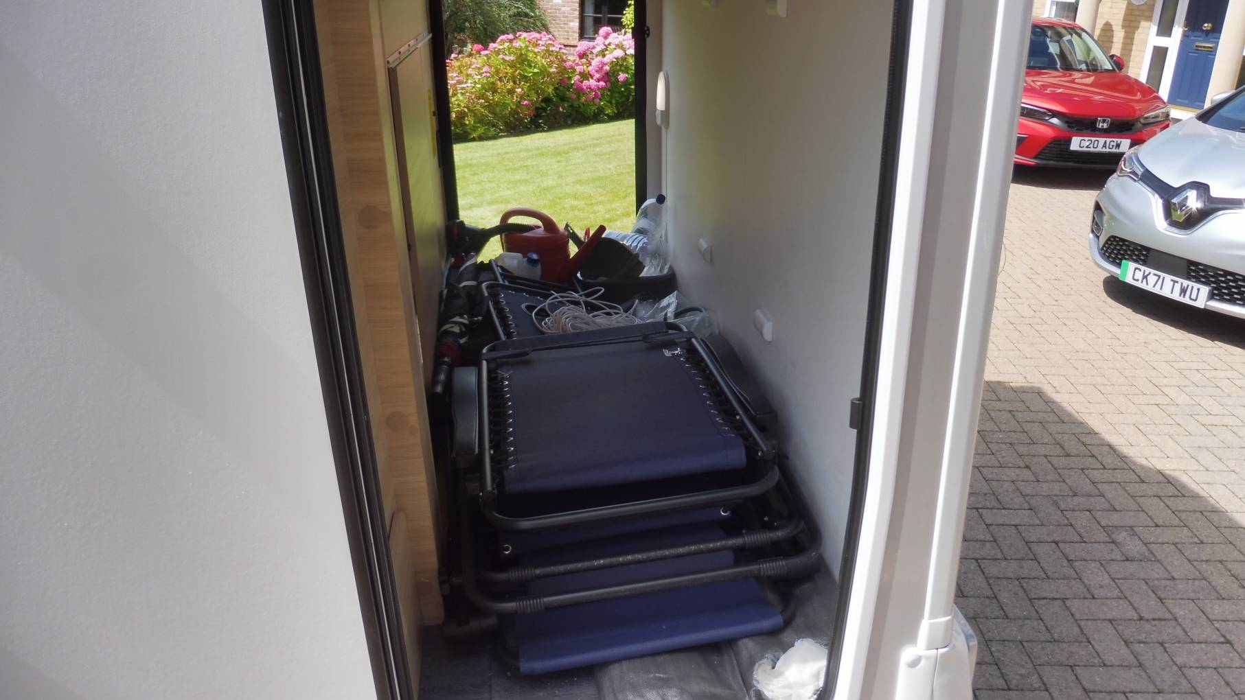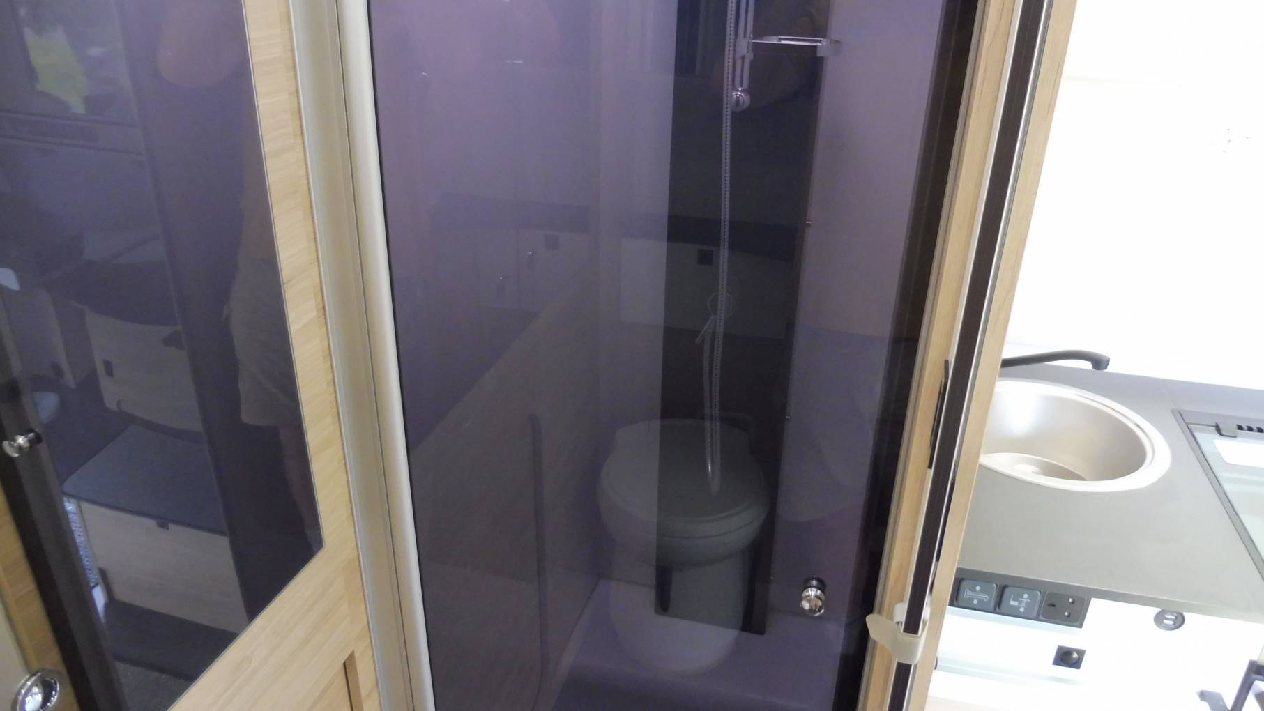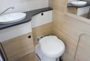 At the rear you have excellent storage between the built in wardrobe and the garage. End washroom is spacious with a separate shower cubicle, wash hand basin and a cassette toilet.